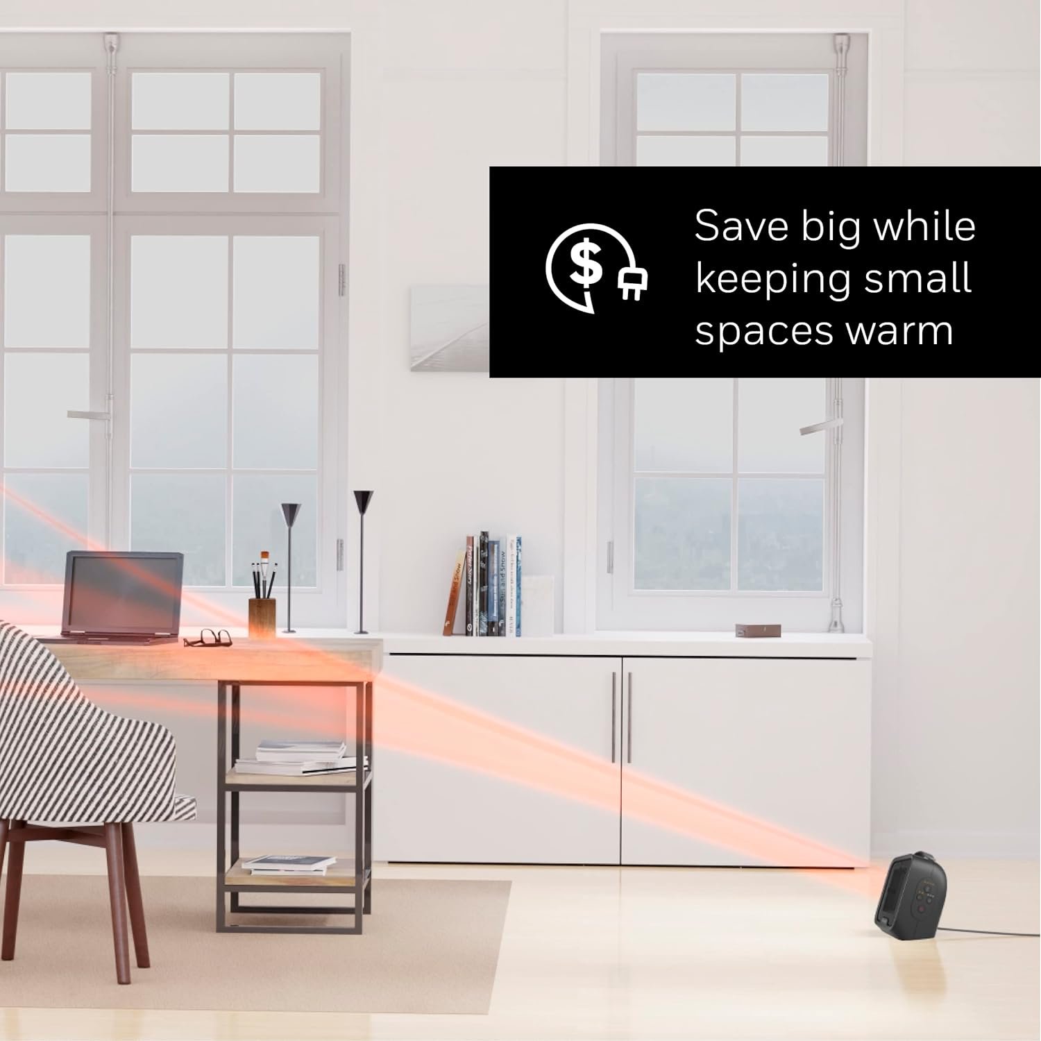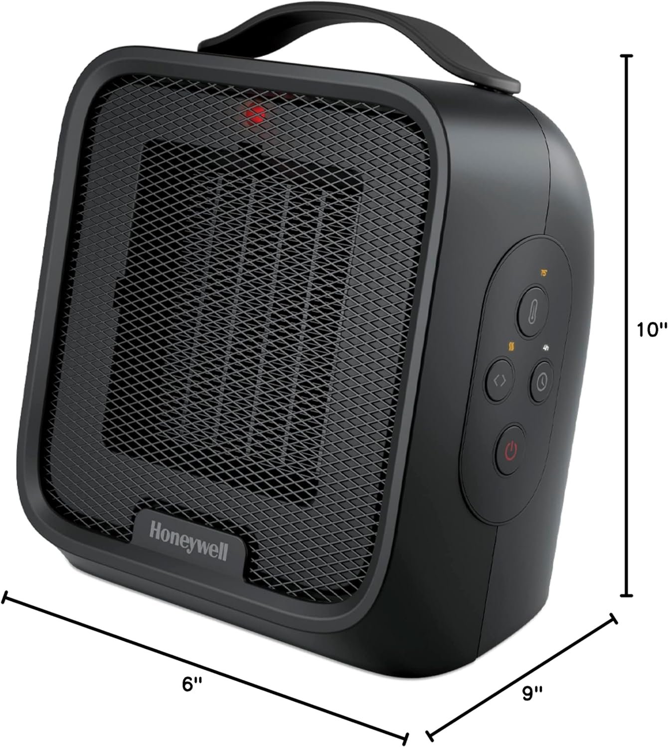 Always stay warm and comfortable with the powerful and comforting heat from the Honeywell UberHeat Plus Ceramic Heater. This smallspaceheaterfeatures easy-to-use electronic controls with 2 comfort settings (high and low). The adjustable thermostatprovides customized comfort with 65/70/75/80 settings, making it idea for personal and small room heating. Plus, it features 3 auto-off timer settings (2, 4, 8 hours), a flexible carrying handle, and lights that automatically dim after 30 seconds. We know nothing is more important than your family’s safety. That is why with our Safety Matters program, we build Honeywell heaters to not only meet the industry standard safety requirements, but to exceed them.This room heateroffers added protection with multiple safety features including a top-over switch, 2x overheat protection, a high-grade plated switch, thermal insulated wiring, reinforced wire connections, high-temp plastic, and cool-touch housing. With a Honeywell space heater, you can save money and energy! By turning down your whole house thermostat a few degrees and heating just the room you are in, a Honeywell air heater can help you save money while providing soothing warmth. We know money is tight but staying warm and feeling safe is important. That’s why we go above and beyond with our safety features. Plus, saving you up to $276* in your heating bills. That’s Honeywell Heater peace of mind. *Calculation Assumes 8 hrs/day use * 7 days a week @ 900 watts * $0.1380 avg kwp* 12 weeks to zone heat and thus decreasing thermostat from 70 to 62 degrees with energy costs from US Energy Information Administration; October 2021; Winter Fuels Outlook