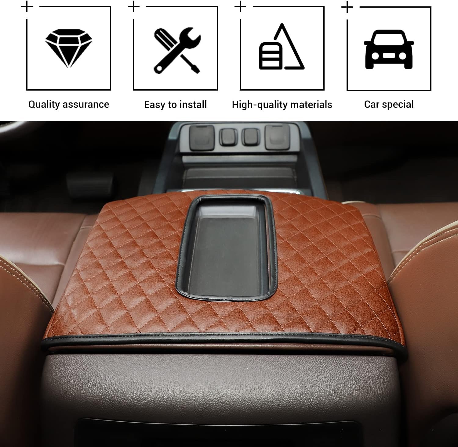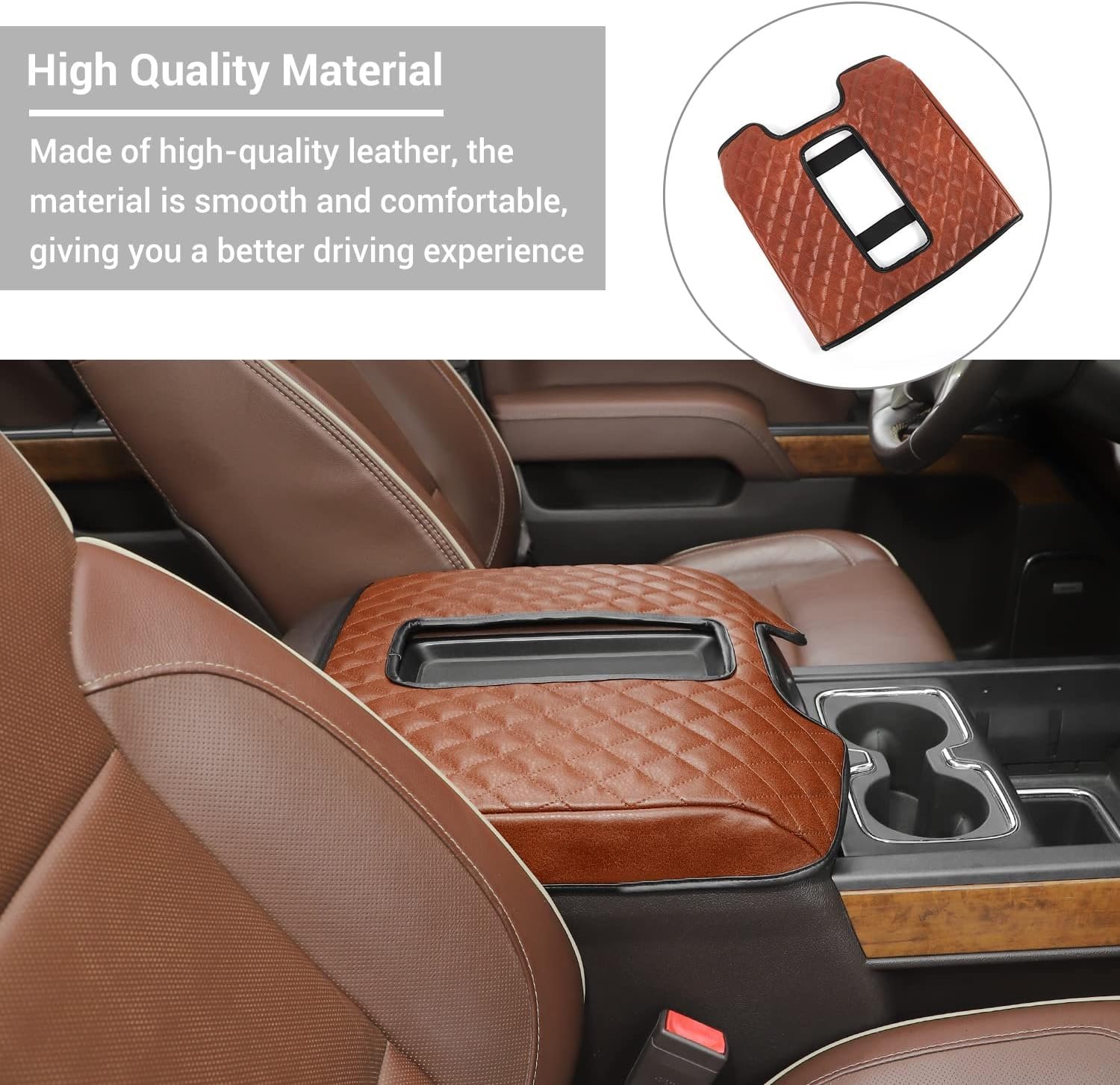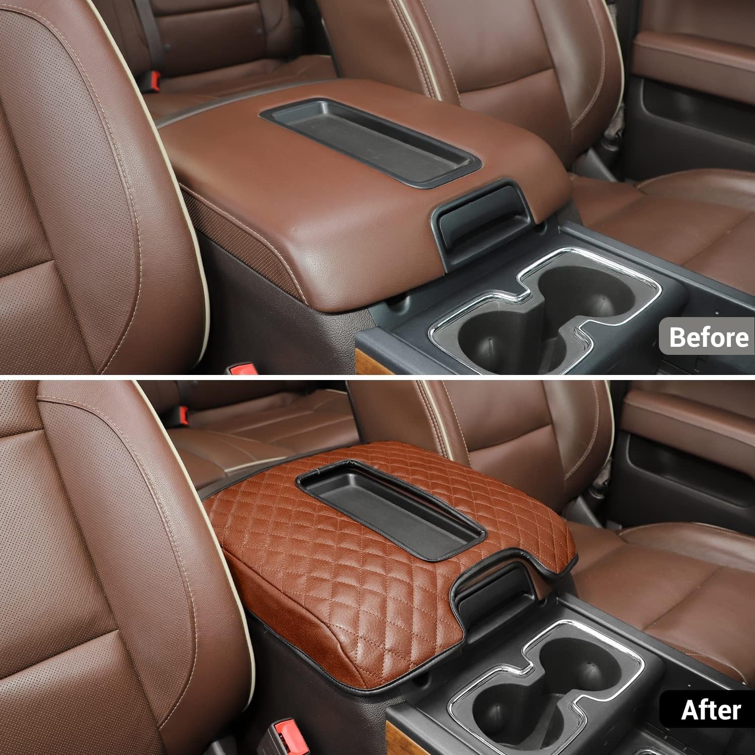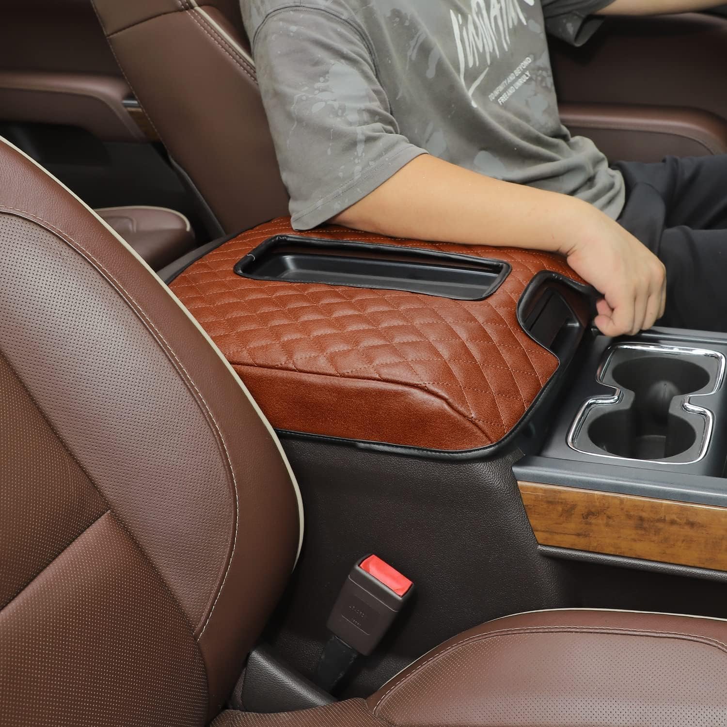 Hoolcar Armrest Pad Cover Center Console Lid Cover for 2014-2017 Chevrolet Silverado & GMC Sierra, Leather Console Replacement, Brown