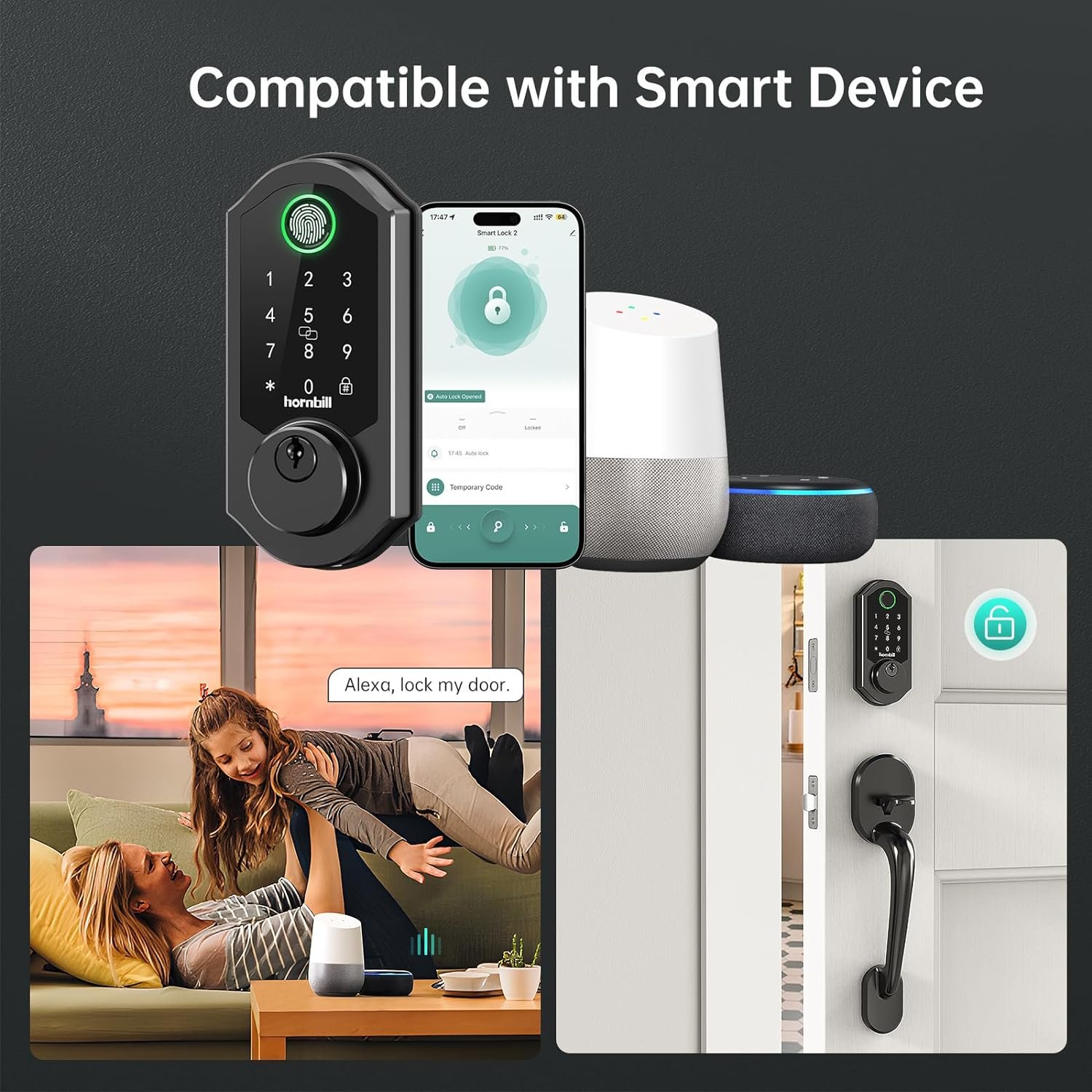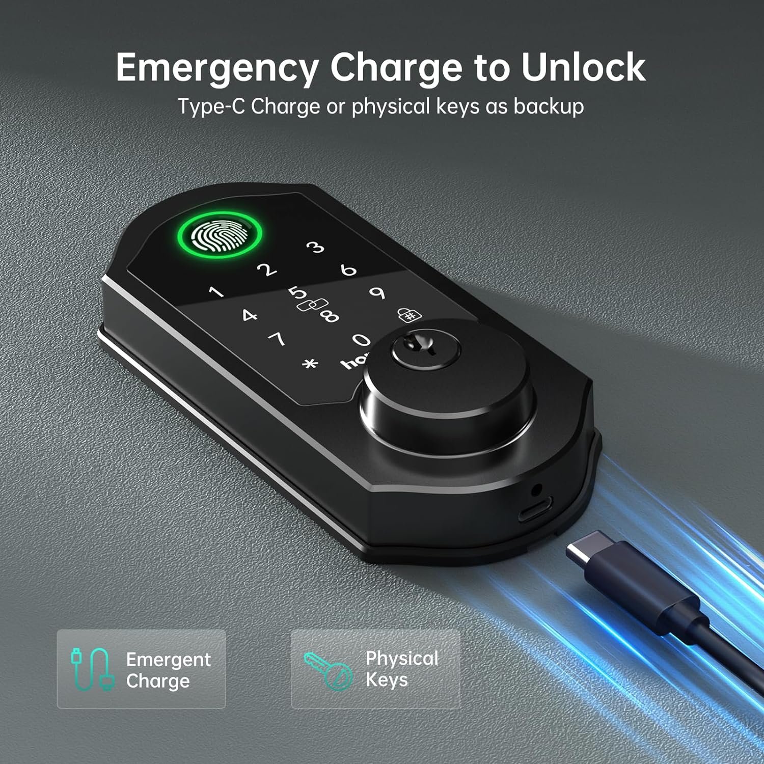 ðã10 in 1 WiFi DeadboltãFeatures Biometric Fingerprint Reader + Bluetooth Keypad + Remotely Lock/Unlock/View Door Logs/App Control + Virtual Passcode + Keyfobs Unlock + Set Auto Lock Timer in 30 mins/One-Touch Lock + Passage Mode + Physical Keys/Emergent Charge(Type-C) + Low Battery Alert + Alexa/Google Home Voice Control.