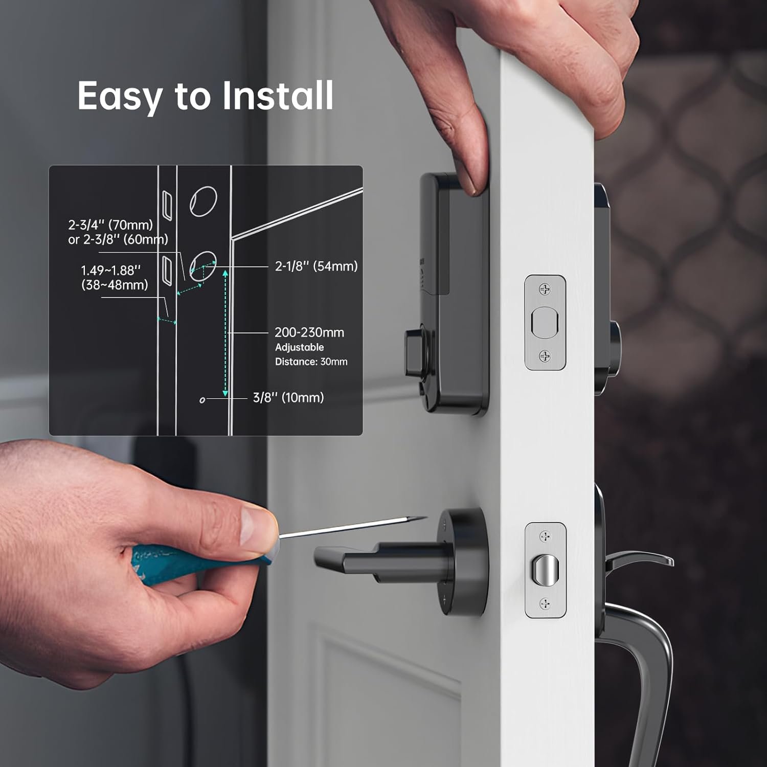 ðãEasy InstallationãNo extra drill. DIY in minutes with a detailed manual including our installation video. Design for US standard left or right hand doors that thickness is 1.49-1.9”(38-48mm); Backset: 2.36”(60mm) or 2.76â³(70mm).