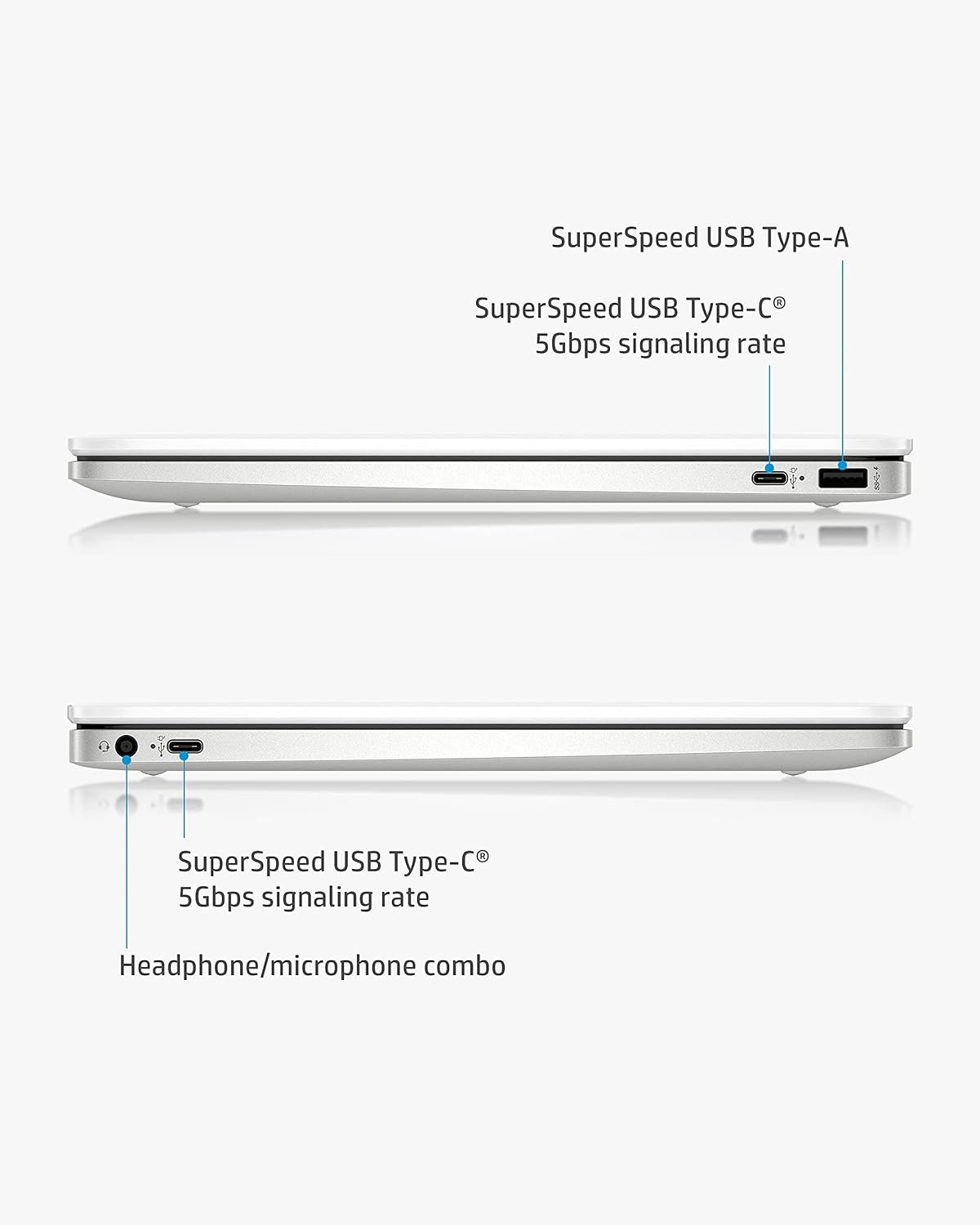 The HP Chromebook empowers you to work more efficiently from the comfort of your own home. The 14” HD (1366 x 768) micro-edge, anti-glare (1) display makes images appear crisp. With Intel® Celeron® N4000 (2) processing power and Intel® UHD Graphics 600 (3), binge watching, gaming, and music are taken to new heights. Securely storing and quickly accessing your work is a breeze with 32 GB eMMC storage (4) and 4 GB of RAM. Work and entertainment doesn’t have to end with up to 13 hours and 30 minutes of streaming power (5) with mixed usage. The Chrome operating system lets you effortlessly navigate through tabs and programs. Your Chromebook is protected with HP’s 1-year limited hardware warranty. Easily communicate with colleagues and friends with the HP Wide Vision HD camera (6) with integrated dual array digital microphones. The Wi-Fi® 5 (2×2) and Bluetooth® 5.0 combo (7) keeps your connection clear so you can continue to work with efficiency. This lightweight computer is 3.24lbs (8), allowing you to easily store it in your Chromebook case for on-the-go use. Reduce your carbon footprint by working with HP ENERGY STAR® certified (9) and EPEAT® Silver registered (10) computers. (1) High-definition (HD) content is required to view high definition images. (2) Multi-core is designed to improve performance of certain software products. Not all customers or software applications will necessarily benefit from use of this technology. Performance and clock frequency will vary depending on application workload and your hardware and software configurations. Intel’s numbering, branding and/or naming is not a measurement of higher performance. Intel, Pentium, Intel Core, Celeron, Iris Xe, Intel logo and the Intel Inside logo are trademarks of Intel Corporation in the U.S. and other countries. (3) Shared video memory (UMA) uses part of the total system memory for video performance. System memory dedicated to video performance is not available for other use by other programs. (4) For storage drives, GB = 1 billion bytes. Actual formatted capacity is less. Portion of internal system storage is reserved and not user accessible. (5) Testing conducted by HP using Google Chrome OS power LoadTest. Battery life will vary and the maximum capacity of the battery will naturally decrease with time and usage. See chromium.org/chromium-os/testing/power-testing for test details. (6) Features may require software or other 3rd party applications to provide the described functionality. Internet service required and not included. (7) Wireless access point and internet service required and sold separately. Availability of public wireless access points limited. Wi-Fi 5 (802.11ac) is backwards compatible with prior Wi-Fi 5 specs. Bluetooth® is a trademark owned by its proprietor and used by Hewlett-Packard Company under license. (8) Weight and system dimensions may fluctuate due to configuration and manufacturing variances. (9) ENERGY STAR and the ENERGY STAR mark are registered trademarks owned by the U.S. Environmental Protection Agency. (10) Based on U.S. EPEAT® registration according to IEEE 1680.1-2018 EPEAT®. EPEAT® status varies by country. Visit www.epeat.net for more information. High-definition (HD) content is required to view high definition images.