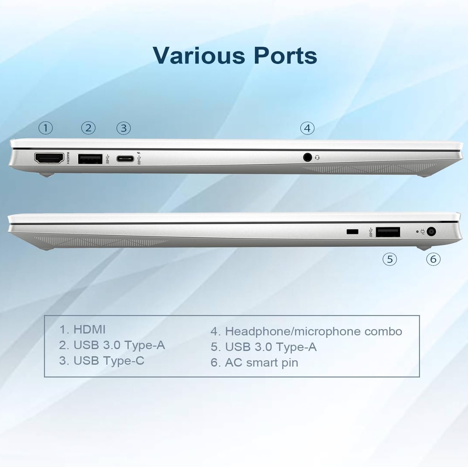[Tech Specs] 2x USB 3.0 Type-A, 1x USB Type-C, 1 x HDMI, 1 x AC smart pin, 1 x Headphone/microphone combo, Webcam, Fingerprint Reader, Backlit Keyboard, Numeric Keypad, Wi-Fi 6 and Bluetooth