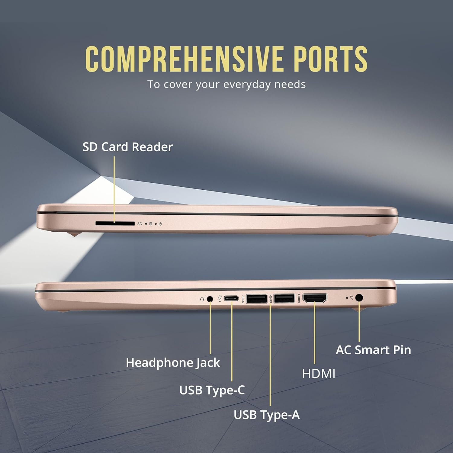 【Windows 11 Home in S Mode】Think, express, and create in an intuitive way, all within an ultra-secure environment. 【1 Year Office 365】Take your productivity and work mobility to the next level with the Microsoft 365 Office Suite (1 year subscription included). 【Dimensions & Weight】12.76 x 8.86 x 0.71 inches, 3.24 lbs. 【Port & Accessories】1 x USB-C 3.0, 2 x USB-A 3.0, 1 x HDMI 1.4, 1 x Media Card Reader, 1 x Headphone/ Microphone combo, 1 x AC Smart Pin. Gold.