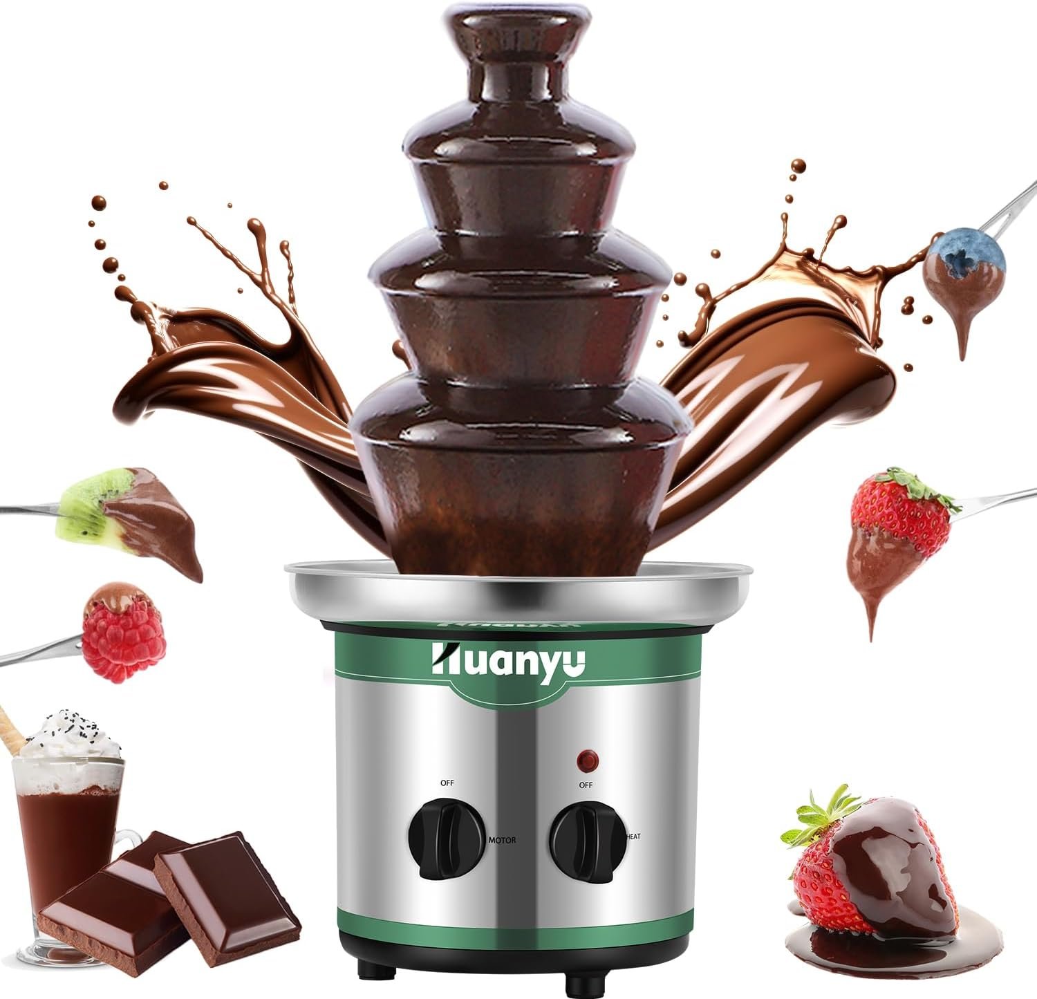 【Stable&Durable】 With independent manual fountain switch and heating switch, simple operation and auto temperature control. The bottom heating bowl can hold enough sauce and maintain the uniformity and stability of heating, at the same time retain the mellow taste of chocolate. Using 304 stainless steel and Environmental Protection aluminum alloy material, beautiful, durable and safe.