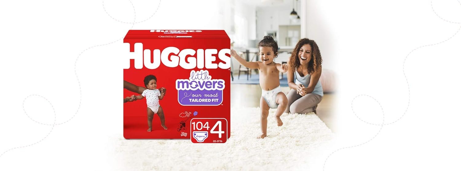 Huggies Little Movers Baby Diapers, Size 4, 104 Ct