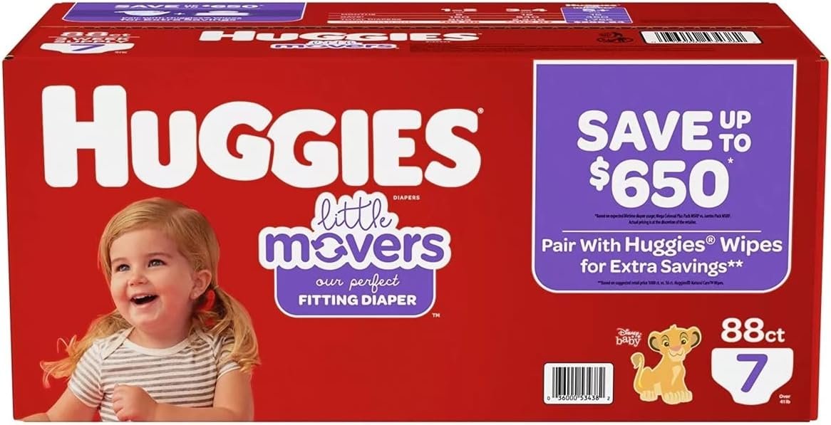 Huggies Little Movers Diapers, Size 7-41+ Pounds (88 Count)