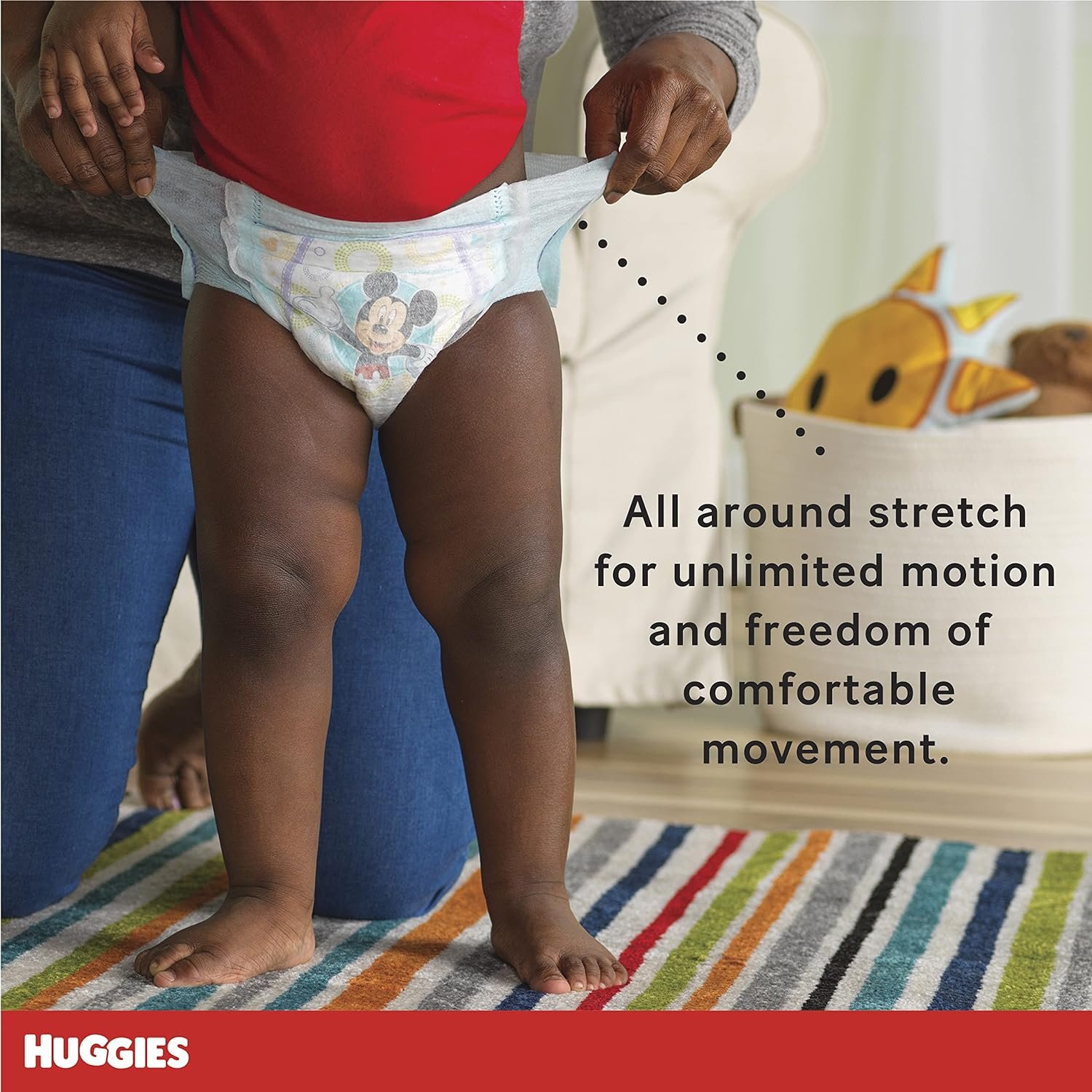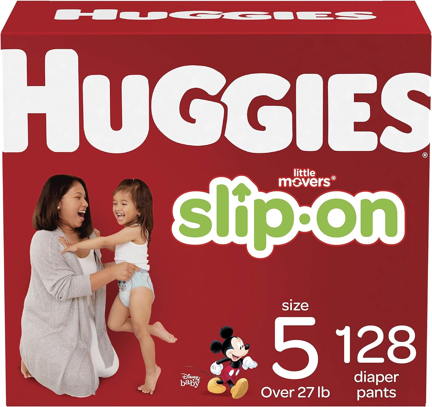 When babies begin exploring the world on their own two feet, they’re ready for HUGGIES Little Movers Slip On Diaper Pants designed for Early Explorers. The unique pre-fastened design has the protection of a diaper inside and the comfort of a pant on the outside. They have a slim, trim fit for freedom of movement and versatility for changing while standing up or lying down. Little Movers Slip On Diaper Pants feature all around stretch for unlimited motion and freedom of comfortable movement. Plus, they have Leak Lock for up to 12 hours of protection and cute Disney designs to make diaper changing fun for your early explorer. Available in sizes 3 (16-28 lb.), 4 (22-37 lb.), 5 (27+ lb.), and 6 (35+ lb.).