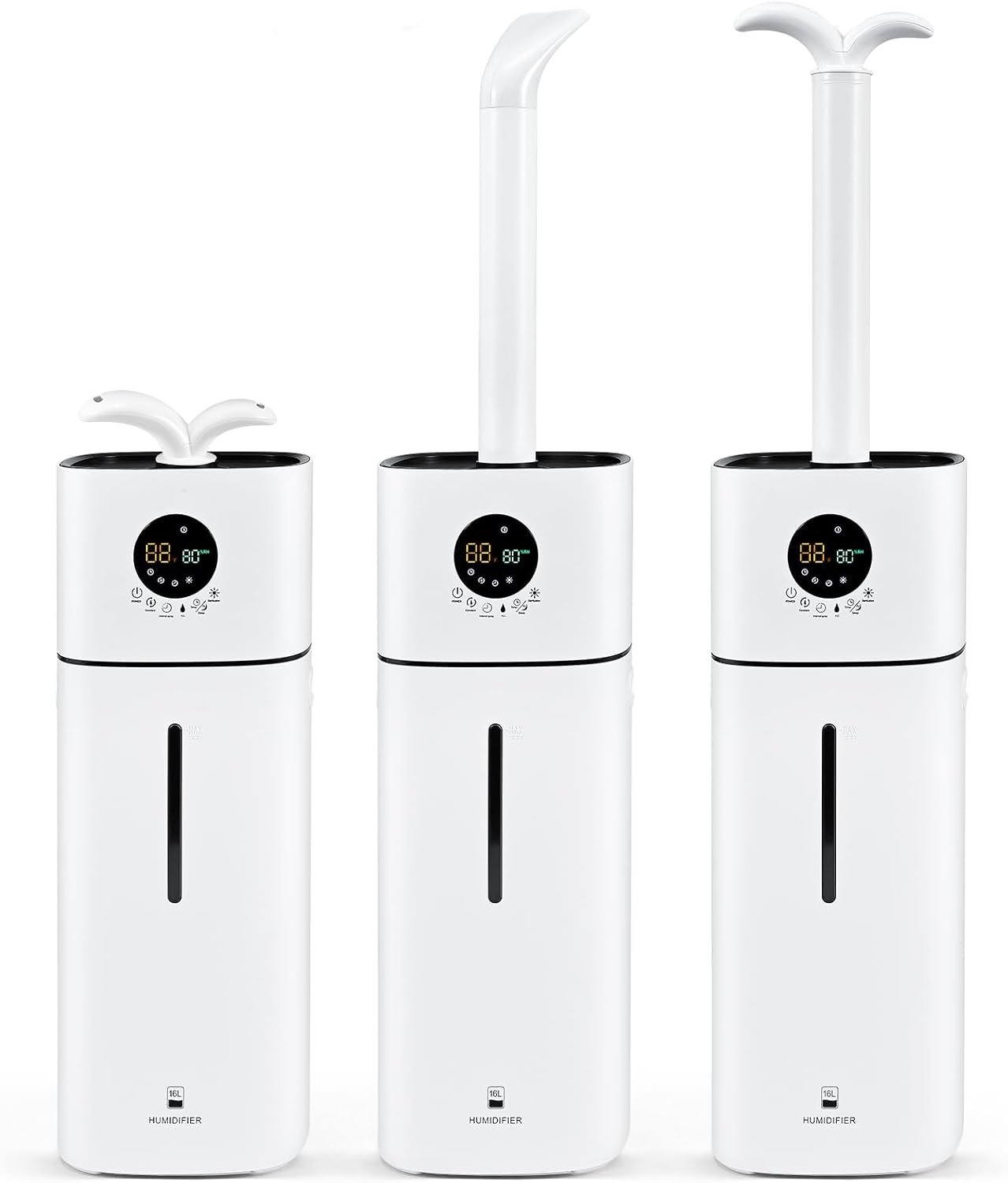 4.2Gal Large Humidifier with Essential OiL Tray: large room humidifier has a 16L water capacity and can provides moisture for over 60 hours when fully loaded. Covering area from 500 to 2000 sq.ft. It is ideal used as whole house humidifiers, humidifiers for plants, grow room, commercial, office