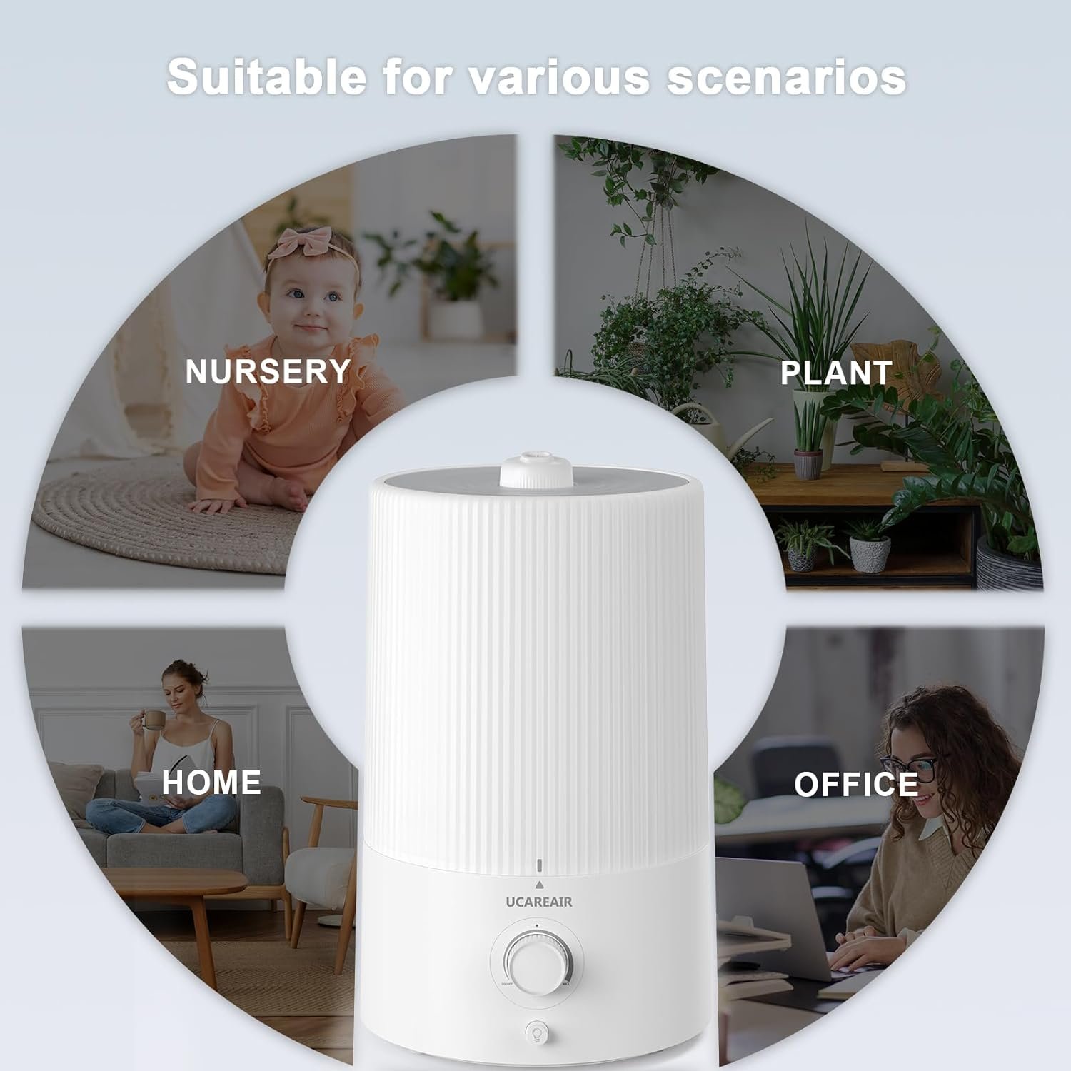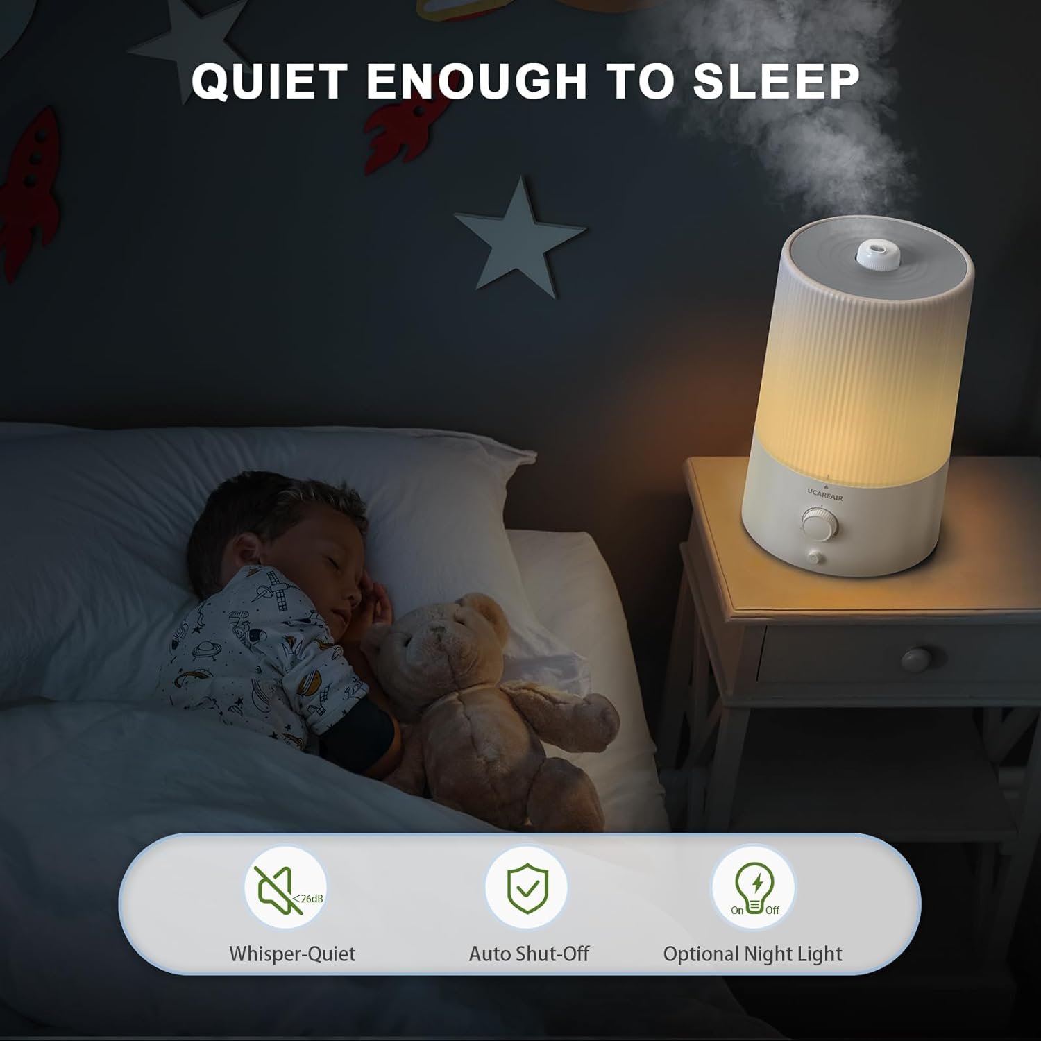 【Peaceful Sleeping Companion】: Relax with ultra-quiet cool mist humidifiers for bedroom baby that function with minimal noise levels under 26dB and enhance your sleep environment with an optional night light. Ideal for individuals who experience easy waking, children and infants.