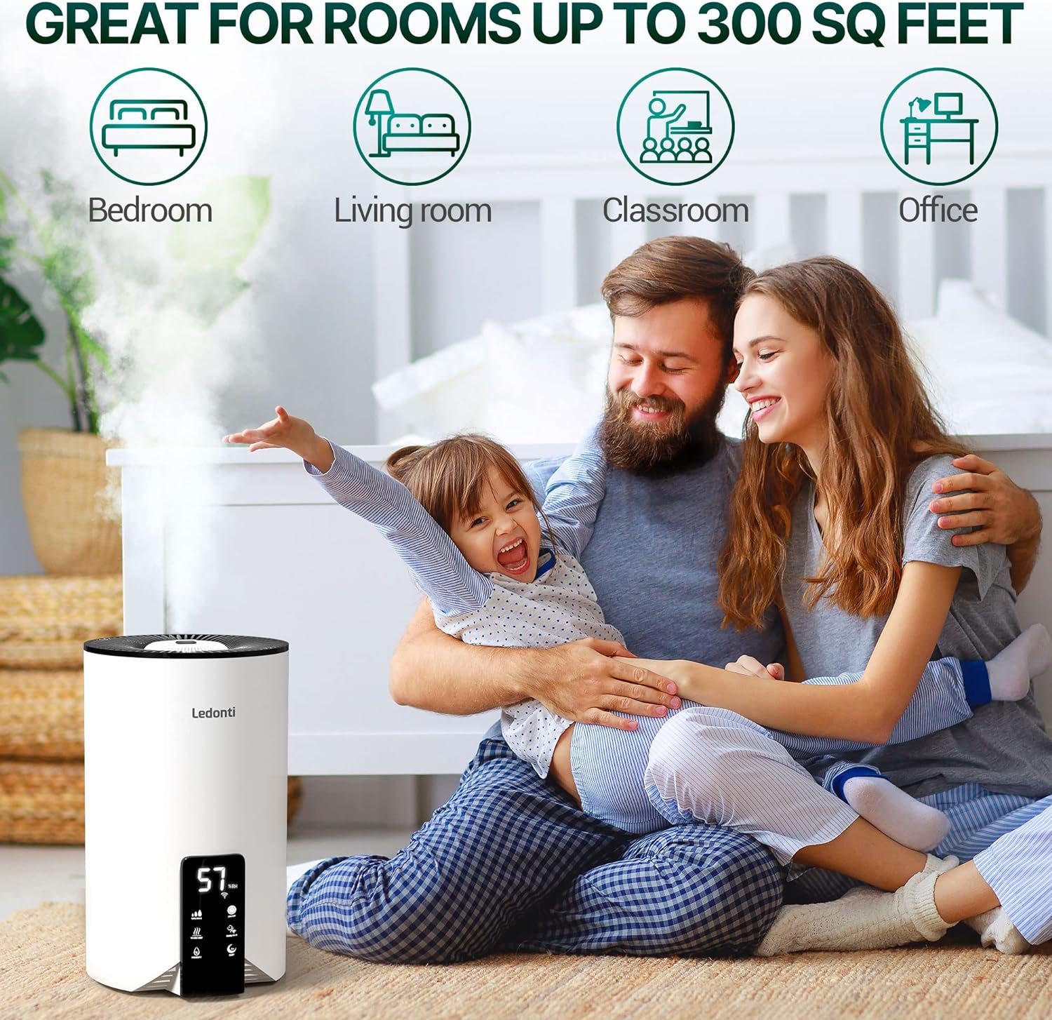 GREAT FOR YOUR BEDROOM. Sleep better and wake up healthier by having the optimal level of humidity in your room with Ledonti warm and cool mist humidifiers for bedroom quiet. Just set the desired parameters or use the auto-off feature to maintain the healthy and comfy environment in your nest.