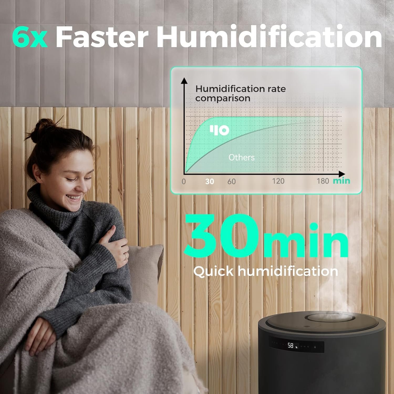 Multi-Function: Warm mist humidifier comes with 3 levels of mist volume (low/medium/high), the mist output range in 400mL/h-1200ml/h, moisten your space environment instantly. Built-in smart humidity sensor with 3 preset humidity (50%/60%/70%), keep your environment relatively stable humidity.