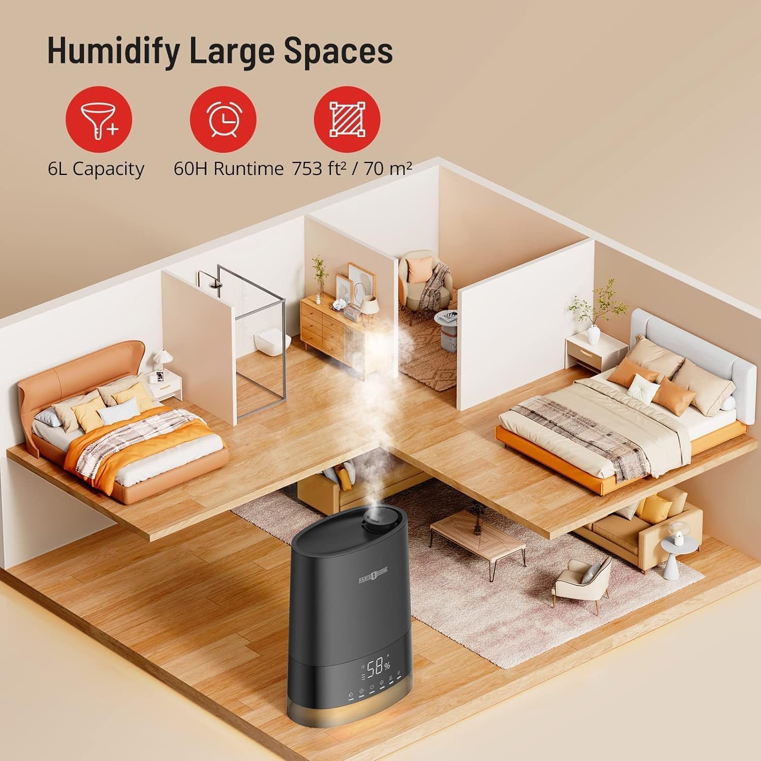 💞【We Also Care About Using Humidifier Safely】For the humidifier, here are 2 protection mode: 1. Tank Lift-up Protection (humidifier will auto shut down in case that the tank is lift up. After putting it back, it will restart working.) 2. Low Water Protection (humidifier will auto shut down because of insufficient water. After refilling, it will restart working.) For more function details, please read user manual carefully before using.