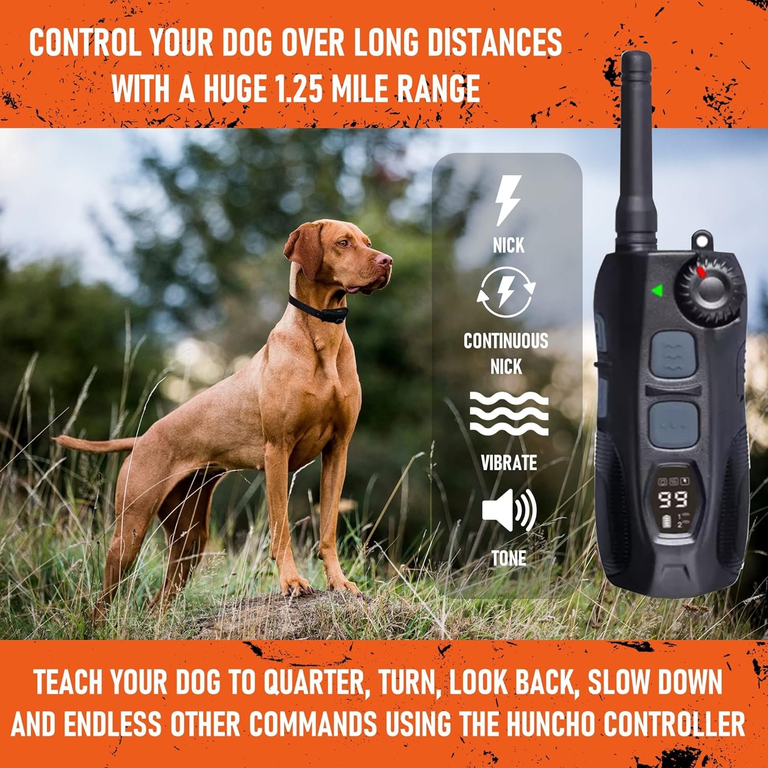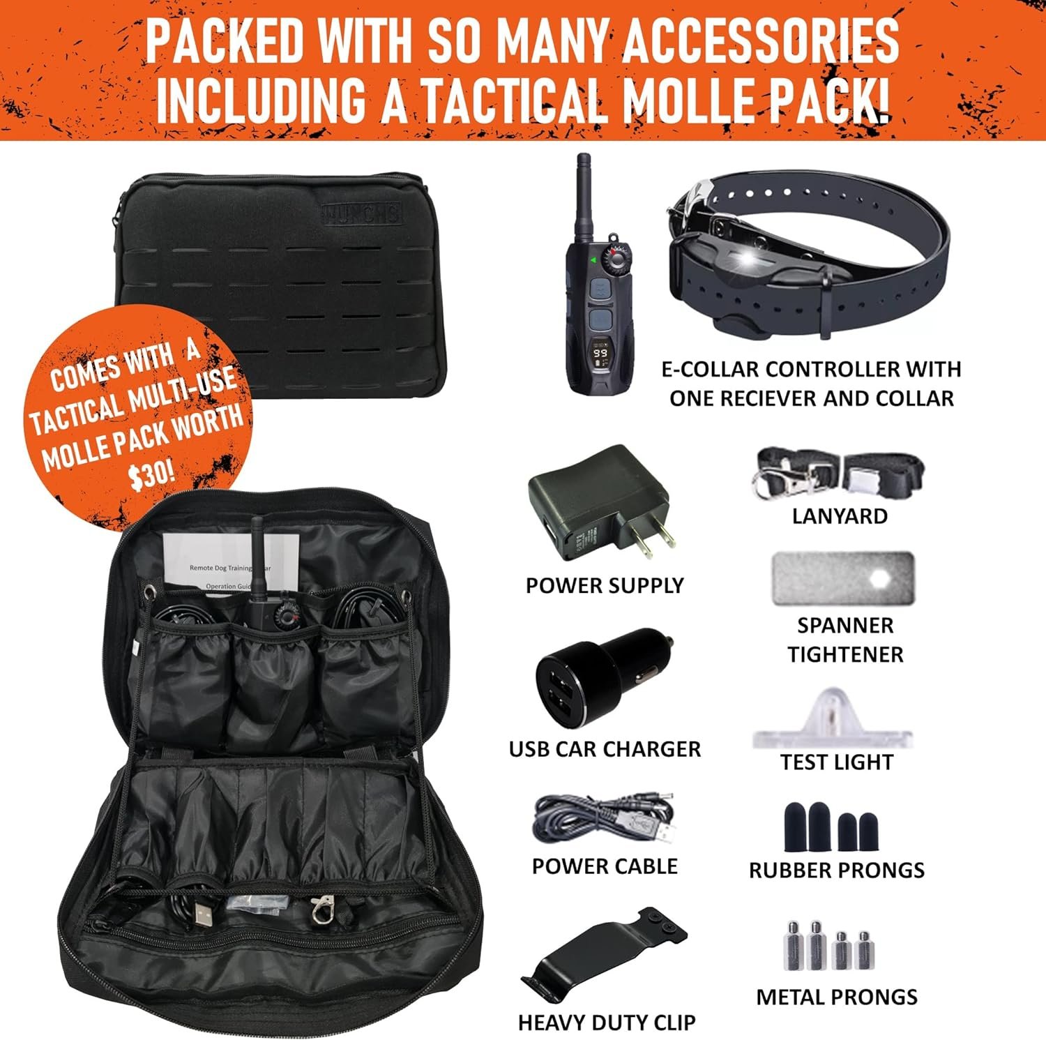 Control Your Hunting Dog: Train your dog and increase your chances of a successful hunt with the Huncho Shock Collar for medium dogs and large dogs! This e-collar dog training collar is available in single or double packs to control 2 dogs at once.