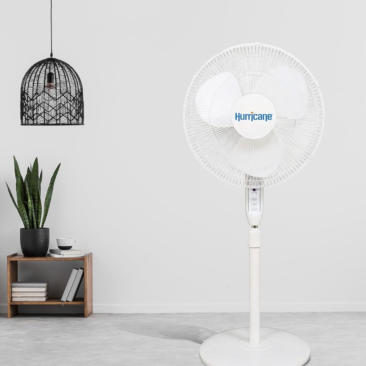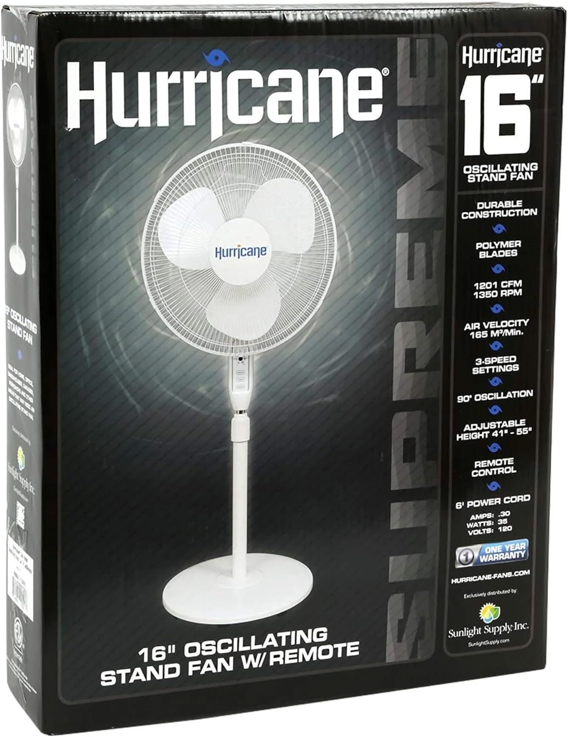 Supreme Stand Fan by Hurricane: 16-inch Hurricane Supreme Oscillating Stand Fan with Remote is tailored to address air movement needs in homes, greenhouses, or shops; Control speed and oscillation conveniently with the included battery-powered remote