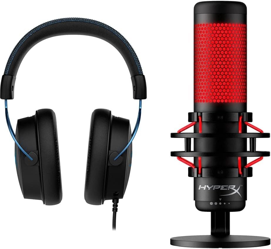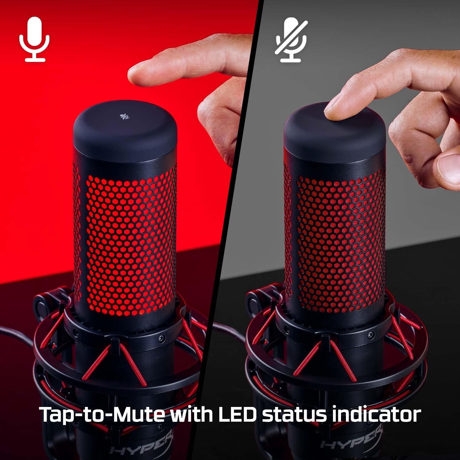 HyperX QuadCast – USB Condenser Gaming Microphone, for PC, PS4, PS5 and Mac, Anti-Vibration Shock Mount, Four Polar Patterns, Pop Filter, Gain Control, Podcasts, Twitch, YouTube, Discord, Red LED