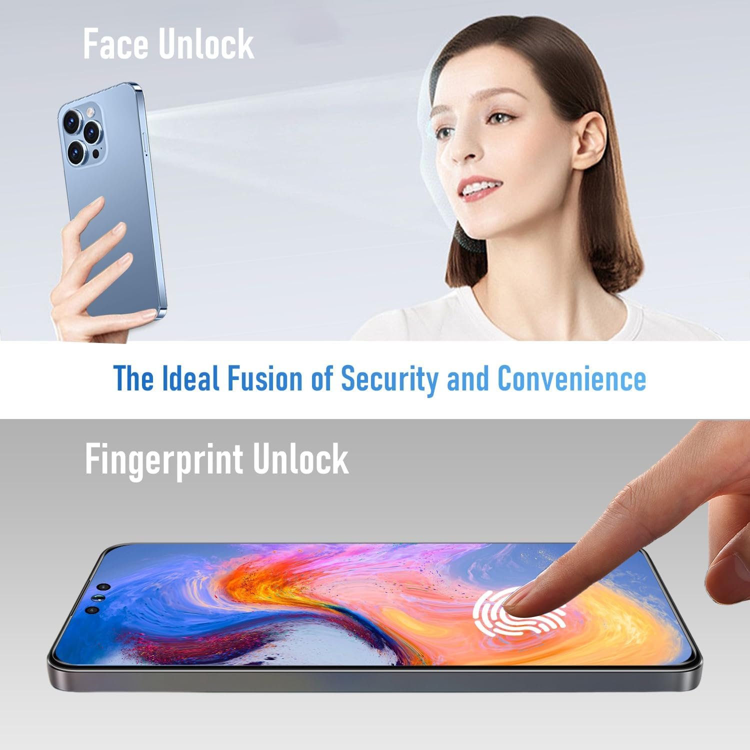 Experience hassle-free security with facial recognition and fingerprint unlocking, eliminating the need for complex passwords. The I14 ProMax unlocked phone blends security and convenience seamlessly, offering a smooth unlocking experience.