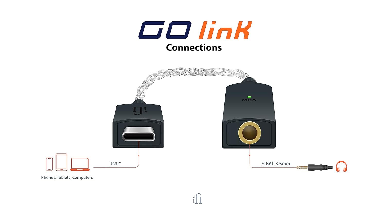 CONNECTIONS – USB-C Input to 3.5mm Headphone Jack. Phones, Laptops & Computers ONLY