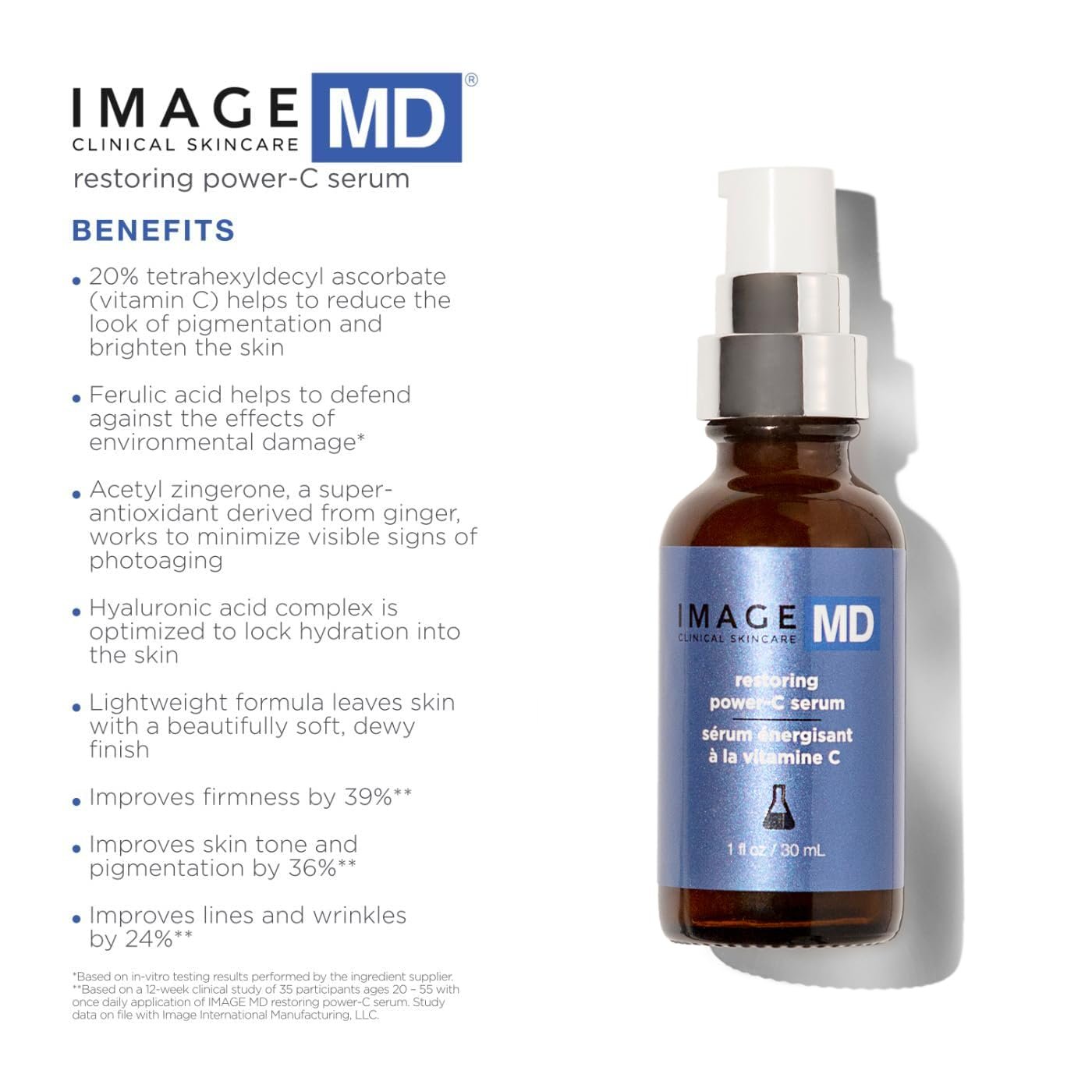 IMAGE Skincare IMAGE MD Restoring Power-C Serum, 20% Vitamin C, Ferulic Acid Facial Serum to Reduce Pigmentation, Firm, Brighten Skin, 1 fl oz