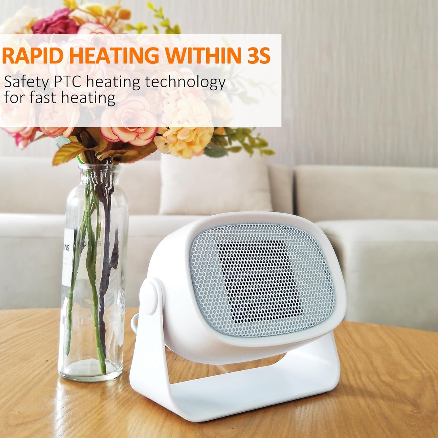 The portable heater for indoor use provides quick and efficient heating, ensuring a cozy and comfortable environment for your home, office, bedroom, or any other personal space.