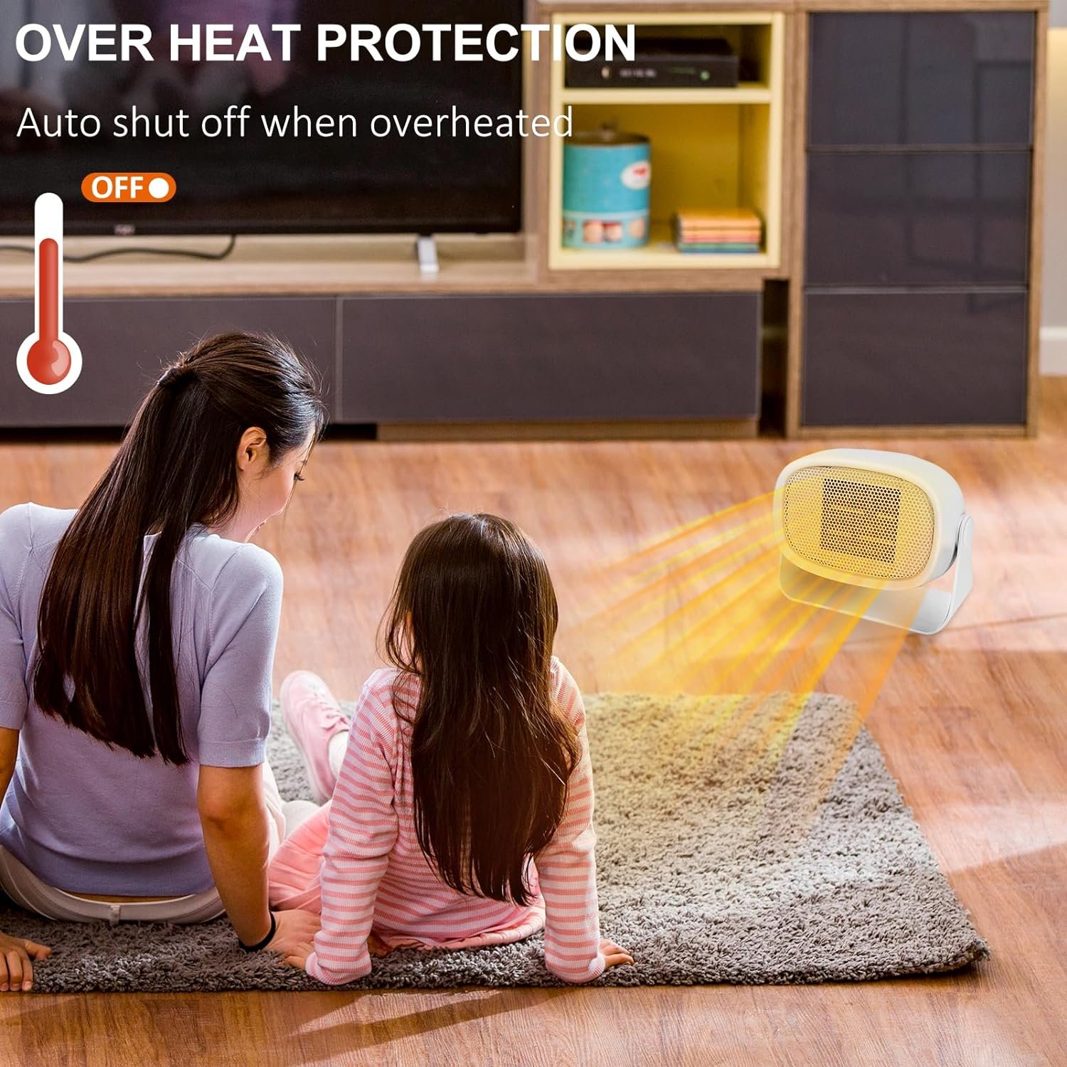 🔥 Overheat Protection – Your safety is our priority. The electric heater is equipped with overheat protection, automatically shutting off when the internal temperature reaches a dangerous level, providing you with peace of mind during extended use.