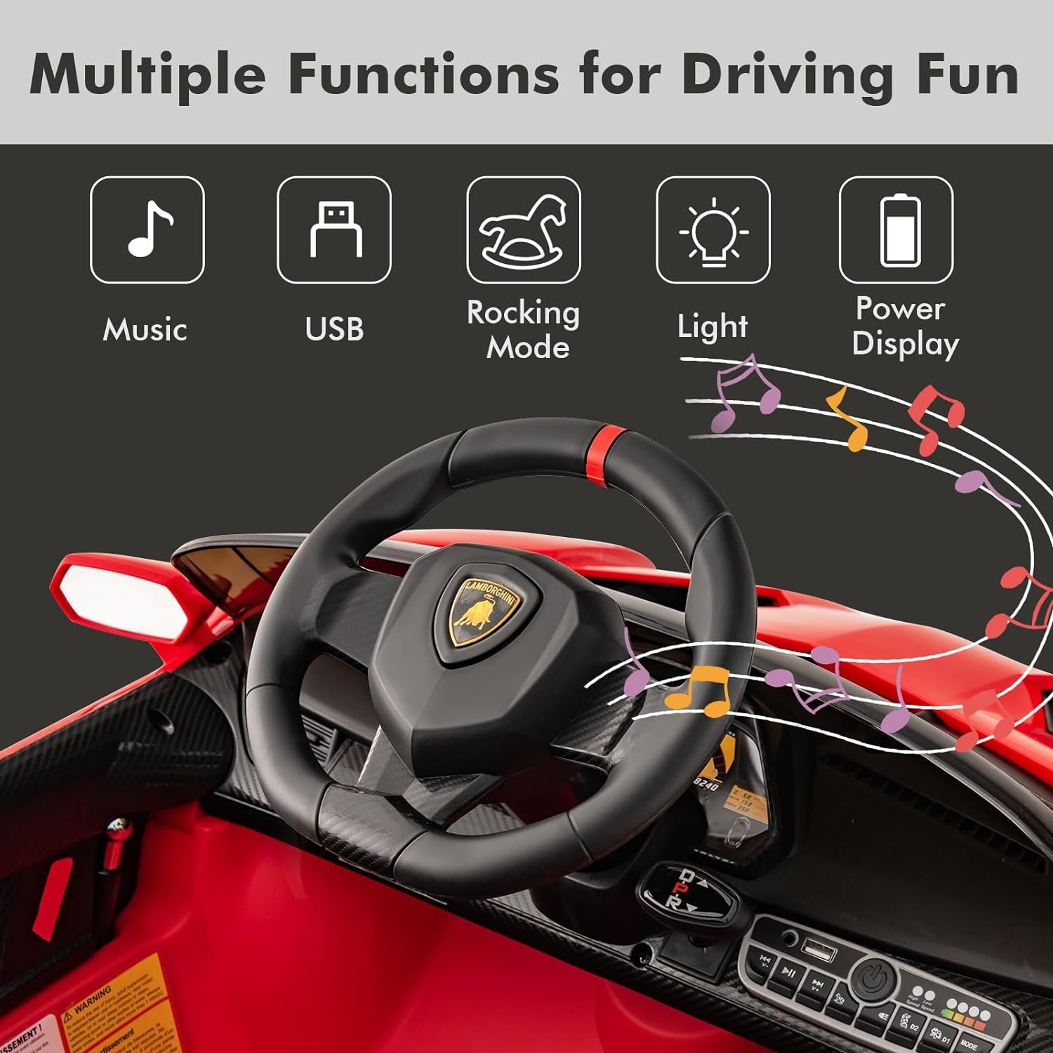 🏎️Spacious 2-Seater Design: INFANS Lamborghini car for kids adopted larger 18” 2-seater design with a max weight capacity of 66 lbs, which allows kids to share the fun with a friend or sibling.