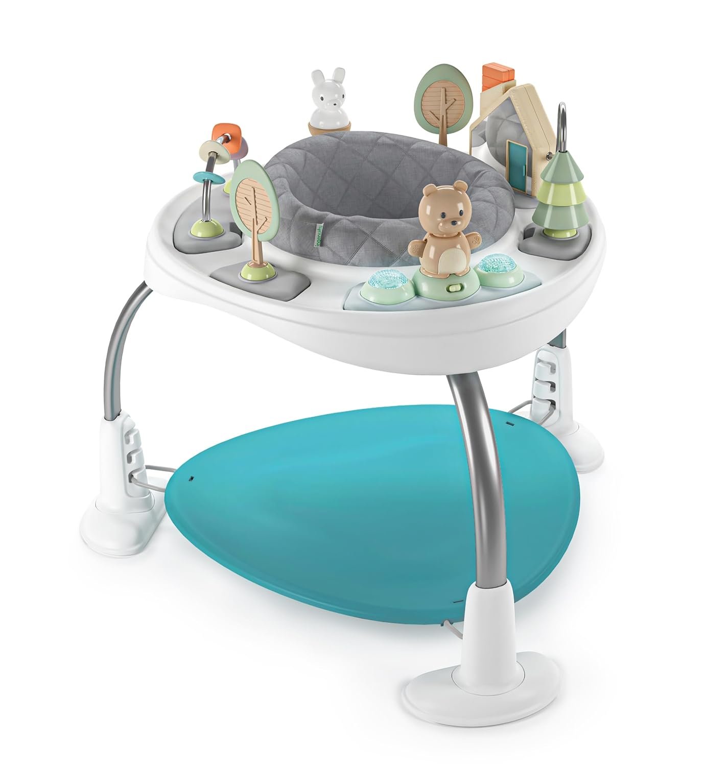 Baby is growing leaps and bounds. And the Ingenuity™ Spring & Sprout™ 2-in-1 Activity Jumper & Table is an entertaining activity center and table for ages 6-24+ months to make those first big leaps. This infant activity center helps little ones build gross motor skills with its stable jump base. Choose between 2 modes: Jumper mode and Toddler Activity Table mode. Jumper mode (6-12 months) allows baby to access all the activities with its 360° rotating seat and ultra-plush supportive seat pad. Remove the jumper base for Activity Table mode (12-24+ months), which comes with a toy storage bag to keep toys organized. Both modes feature 11 engaging, nature-inspired activities with lights and sounds. As your little one gets taller, the jumper features 3 adjustable height positions that grow with baby. Messes are easy to clean with the wipeable seat pad, toys, and table. Complete the collection with the Ingenuity™ Step & Sprout™ 3-in-1 Activity Walker to help baby take supported first steps. The nature-themed, gender neutral activity center and walker introduce little ones to mobility and play, make the cutest baby shower gift, and match any home decor.