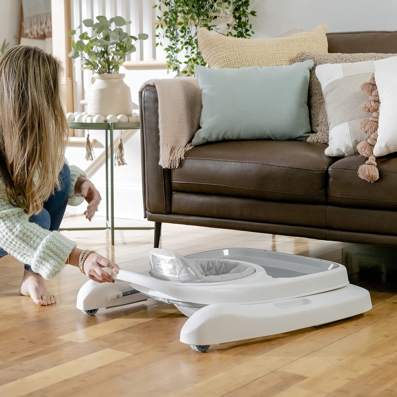 The world is at baby’s feet with the Ingenuity™ Step & Sprout™ 3-in-1 Activity Walker. Little ones ages 6-24 months can get moving and explore nature-themed activities in 3 different modes that grow with baby. Activity Walker mode supports baby’s first steps, while Push-Behind Walker mode helps keep baby steady as they walk. The 3 removable nature-inspired toys have suction cups for attaching to other trays or tables. For messes, this easy to clean walker includes a large tray with a removable, BPA-free, dishwasher safe tray insert, machine washable seat pad, and wipeable toys. The ultra-plush seat pad keeps baby comfy, while the sturdy frame helps keep baby secure. As your little one grows, the baby activity walker has 3 adjustable height positions. Gender neutral and complementary with any home décor, this activity walker is great for gifting. When you’re ready to travel or store away, the foldable design with carry handles and latch make it easy. Complete the collection with the Ingenuity™ Spring & Sprout™ 2-in-1 Activity Jumper & Table, which helps encourage gross motor skill development.