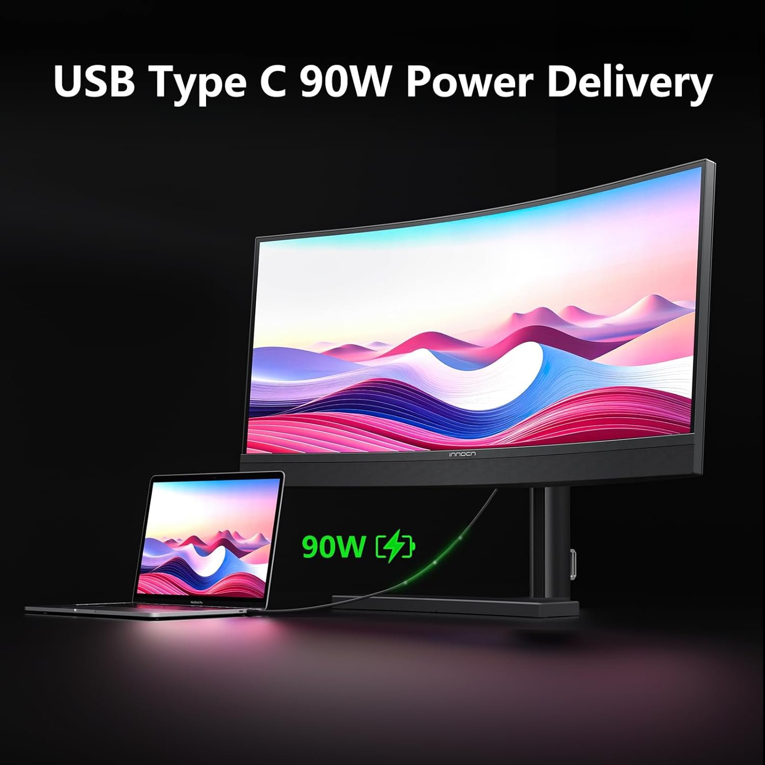 INNOCN 34M1R 34″ Mini LED Curved Ultrawide Gaming Monitor 3440 x 1440p 165Hz PC Computer Gaming Monitor, USB Type C Power Delivery, HDMI, DP, Stereo Speakers, Charger Pad, Black