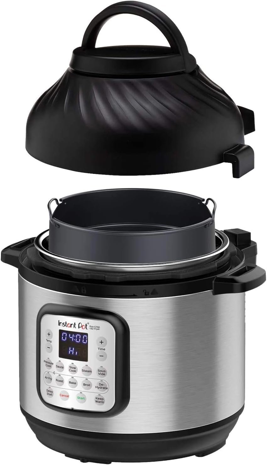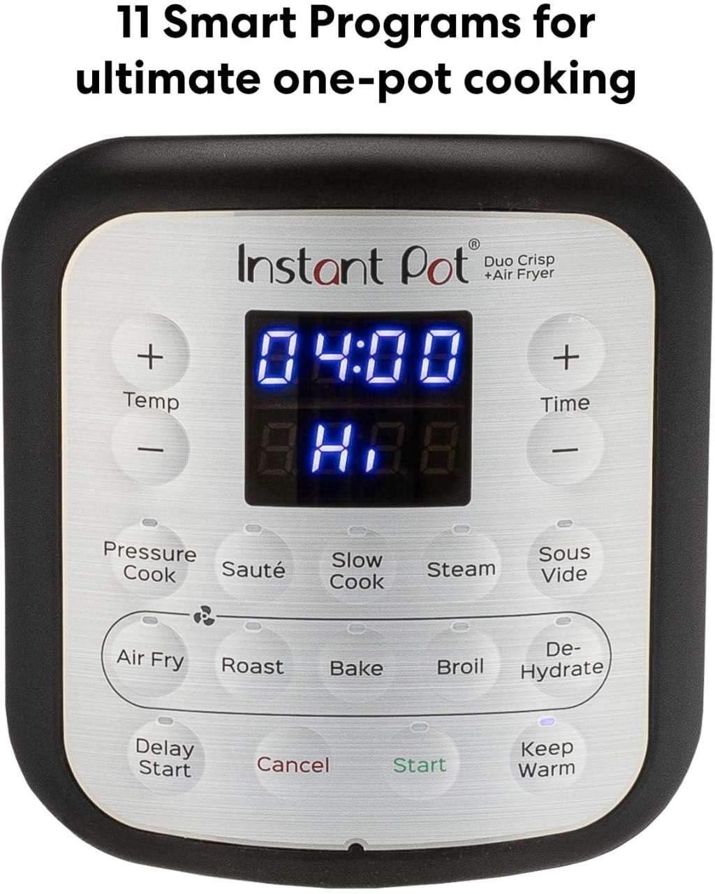 Instant Pot Duo Crisp 11-in-1 Air Fryer and Electric Pressure Cooker Combo with Multicooker Lids that Fries, Steams, Slow Cooks, Dehydrates,Free App With Over 800 Recipes, Black/Stainless Steel, 8QT