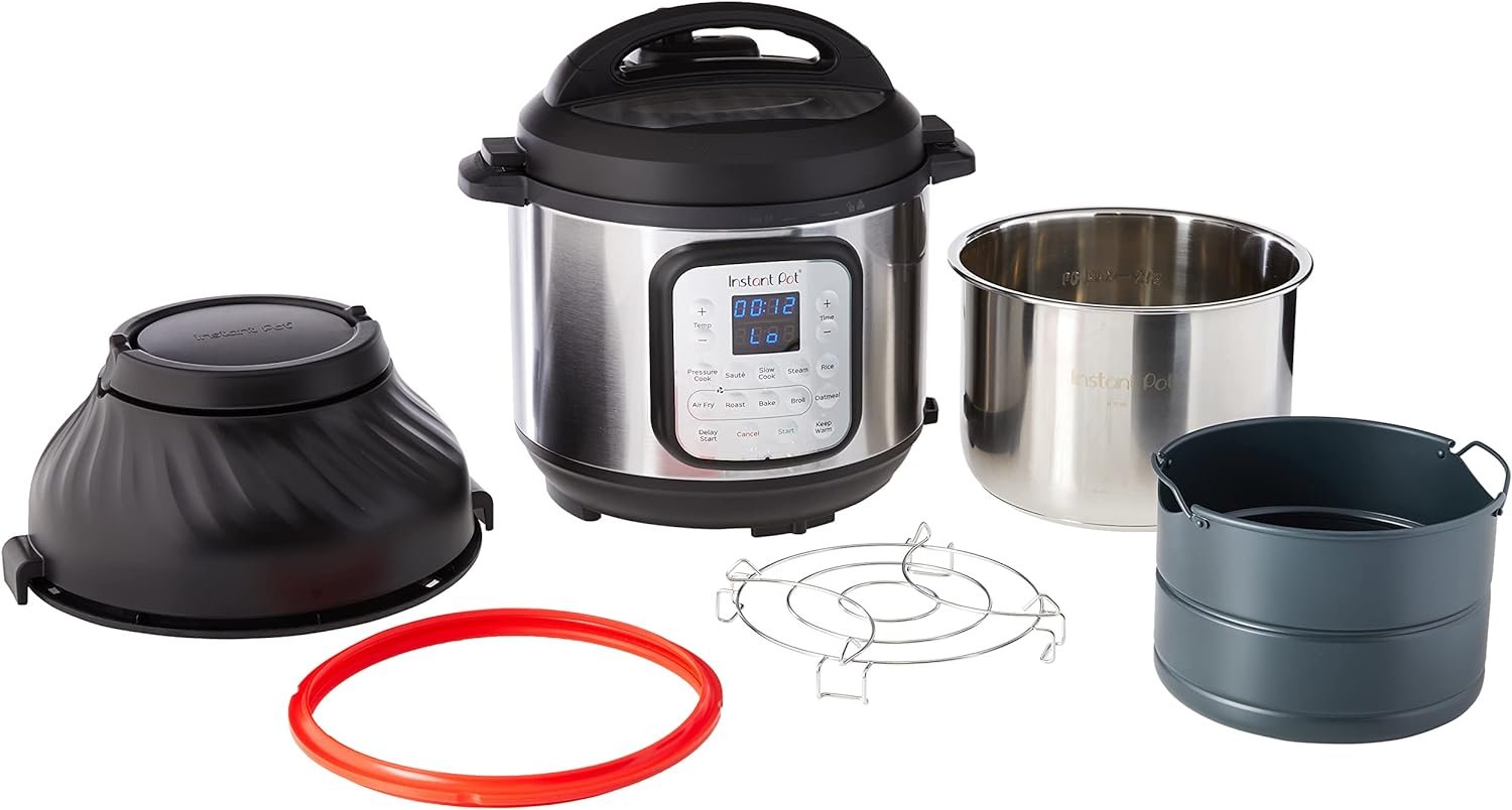 Instant Pot Duo Crisp 9-in-1 Electric Pressure Cooker and Air Fryer Combo with Stainless Steel Pot, Pressure Cook, Slow Cook, Air Fry, Roast, Steam, Sauté, Bake, Broil and Keep Warm