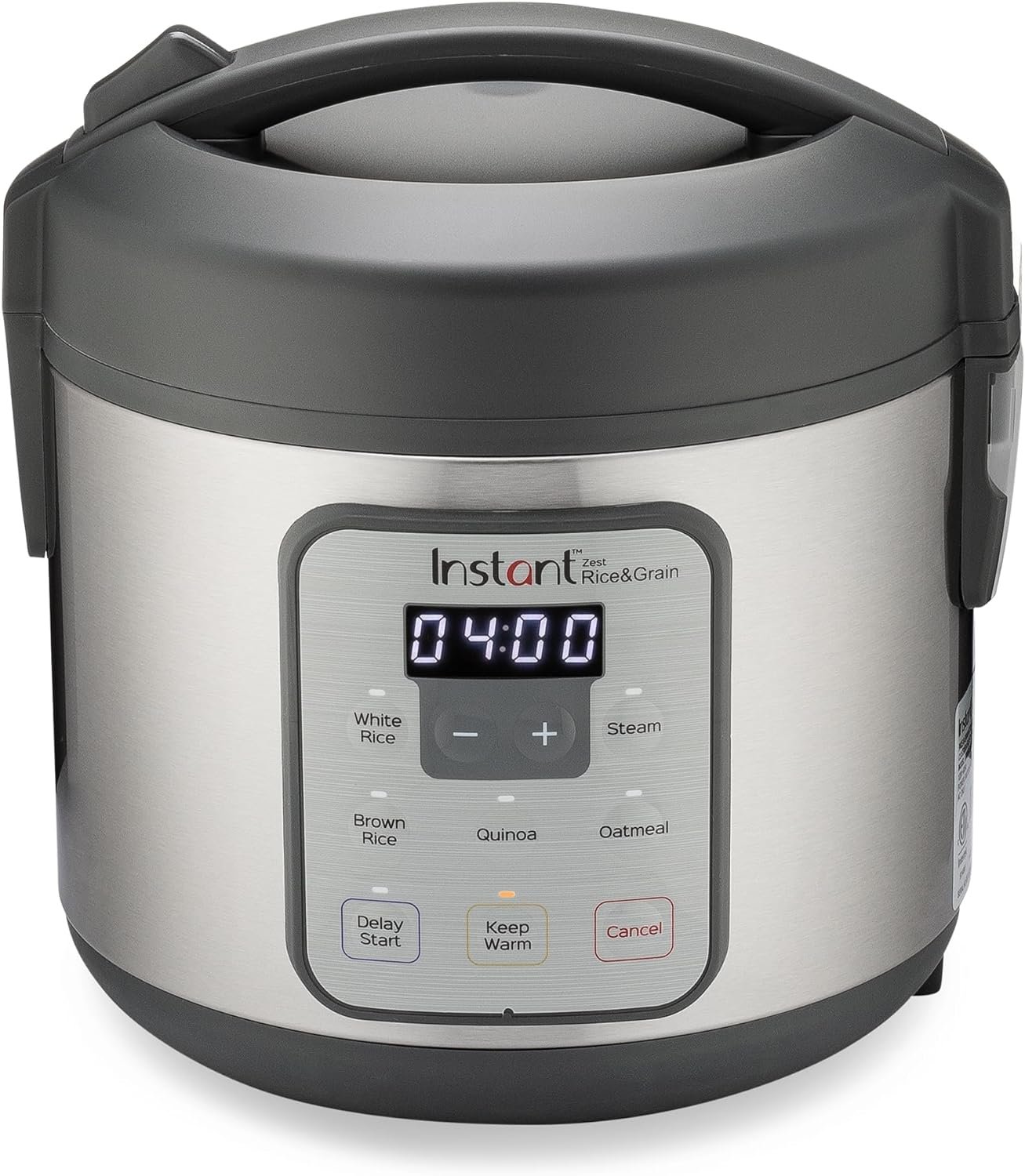 From the makers of Instant Pot, the Instant Zest Rice and Grain Cooker with 8-cup capacity is the perfect combination of value, convenience and cooking ease. Smart cooking programs help you save time and ensure dishes turn out exactly as you want them to. Fine-tune and save cooking times and temperatures that suit your family’s tastes. In addition to the smart program presets for white and brown rice, quinoa and oatmeal, you can cook any type of rice and grain fast and perfectly — from millet, farro and freekeh, to polenta, barley, rice pudding and more. Even hearty grains like spelt and wheat berries, which typically require lots of cooking time. More than just a rice cooker, the Instant Zest quickly steam veggies, fish, dumplings, tamales, cabbages, wontons and more with ease. Bright, bold display and status indicators let you know exactly where your food is in the cooking process. Delay start and keep warm functions make sure your rice, grains and more are ready when you are.