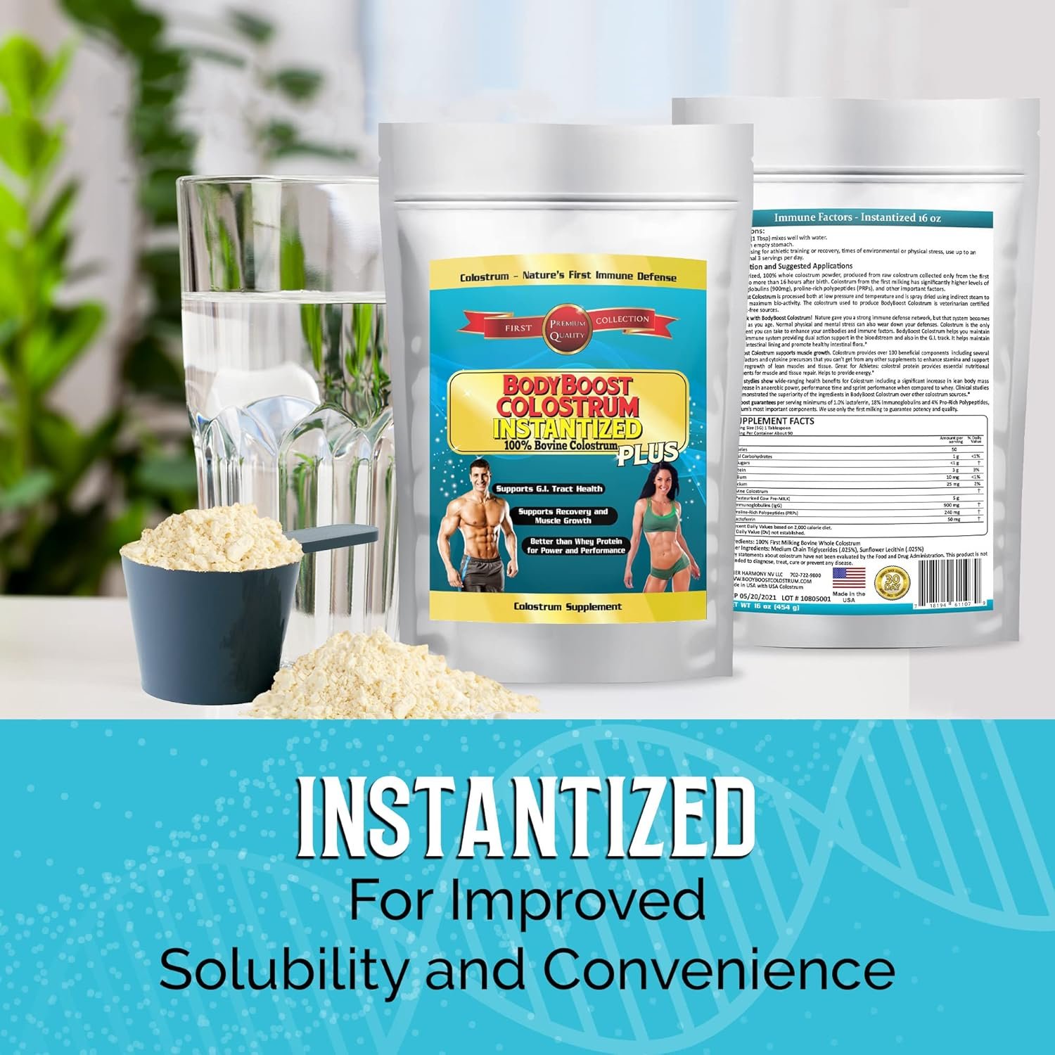 Instantized Colostrum Whole, 99.5% Bovine Colostrum Powder, Immune Booster with Immunoglobulin & Lactoferrin, Gut Health, Diverse Intake,16 oz