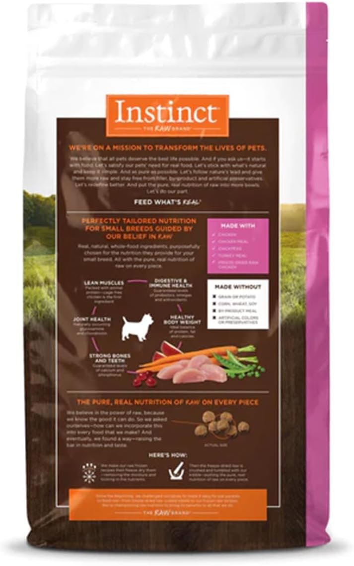 THE FIRST RAW COATED KIBBLE: Instinct Original dry dog food is high protein dog food where every piece of kibble is coated in freeze dried raw for nutrition and taste. Delicious, healthy flavor that small dogs crave.