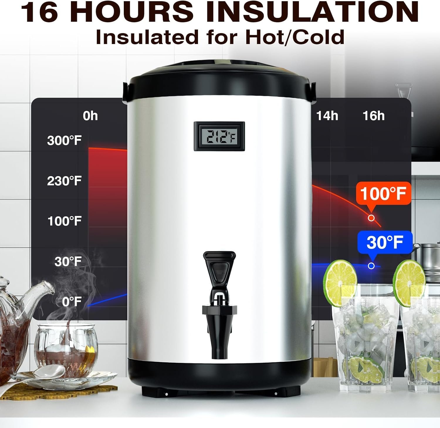 【VISUAL THERMOMETER】Non-heating Function with just Keeping Warmth.Convenient to display temperature on the LCD screen with Nalison easy-to-read thermometer of beverage dispenser. Our hot and cold berevage dispensor adopts instant -read thermometer makes for an essential kitchen gadget. You can easily dispense everyone’s favorite drinks at just the suitable temperatures.