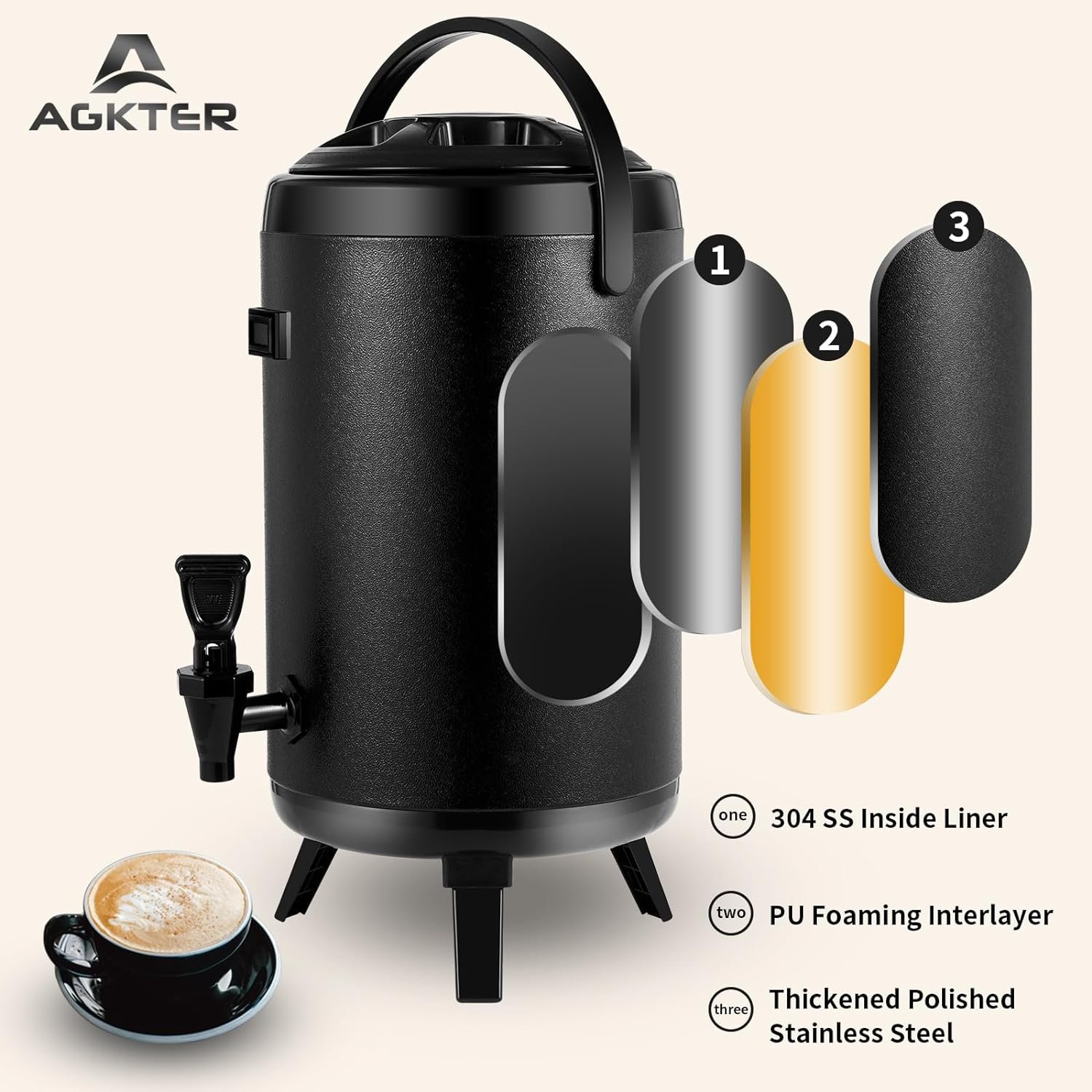 ✔【Effective Three-Layer Insulation】Our dispenser features a triple-layered structure, including a thickened stainless steel exterior, a central PU layer for effective insulation, and a 304 food-grade stainless steel liner. This design ensures hot beverages gradually decrease in temperature to a minimum of 86 degrees Fahrenheit over 12 hours, while cold beverages slowly rise in temperature, reaching a maximum of 68 degrees Fahrenheit over the same period.