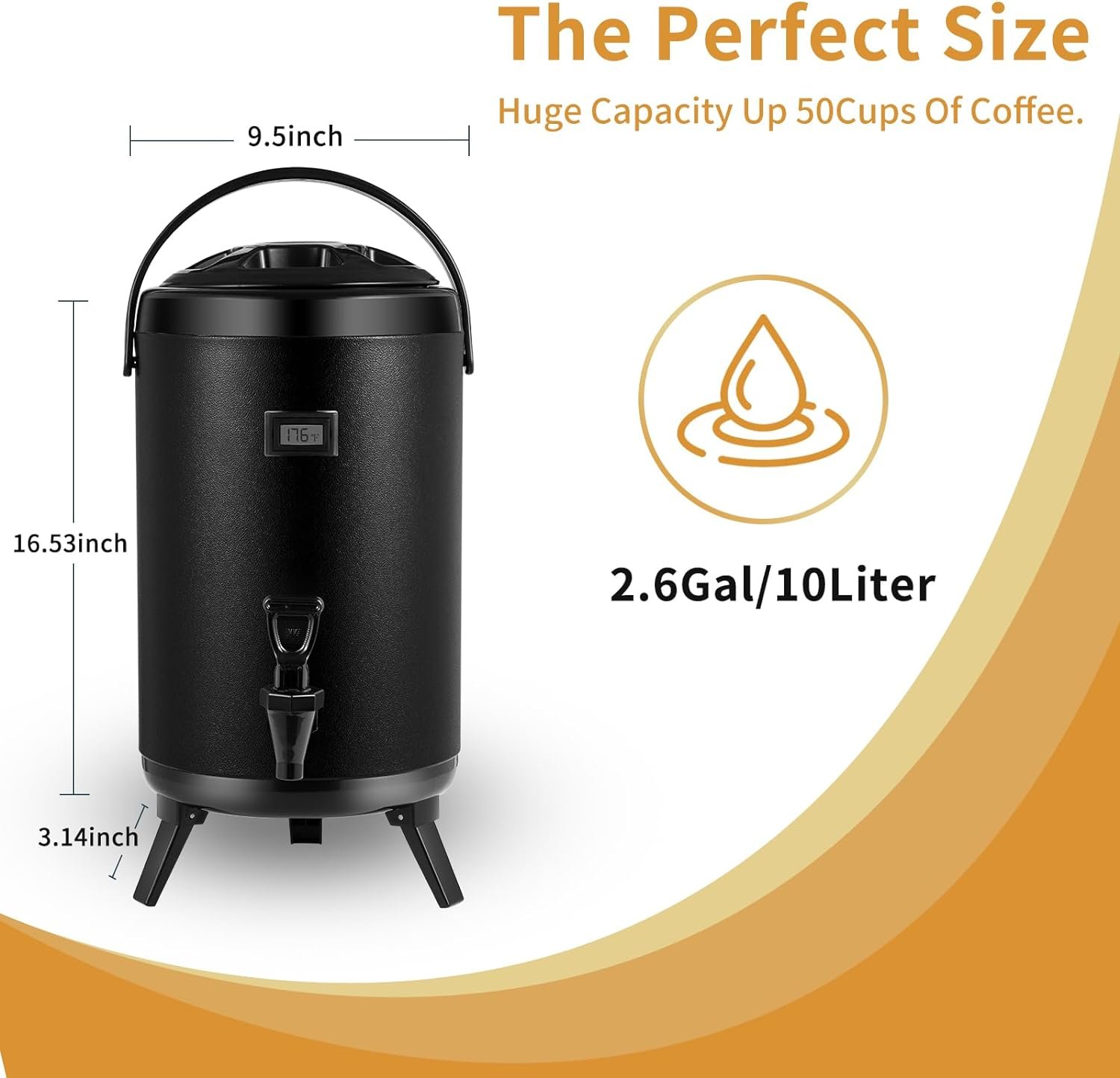 ✔【Large Capacity & Versatility】With a capacity of 2.6Gallon/10.6Quarts/10 Liters, our round dispenser can hold a variety of hot or cold beverages, making it perfect for all occasions – from family gatherings to corporate events.