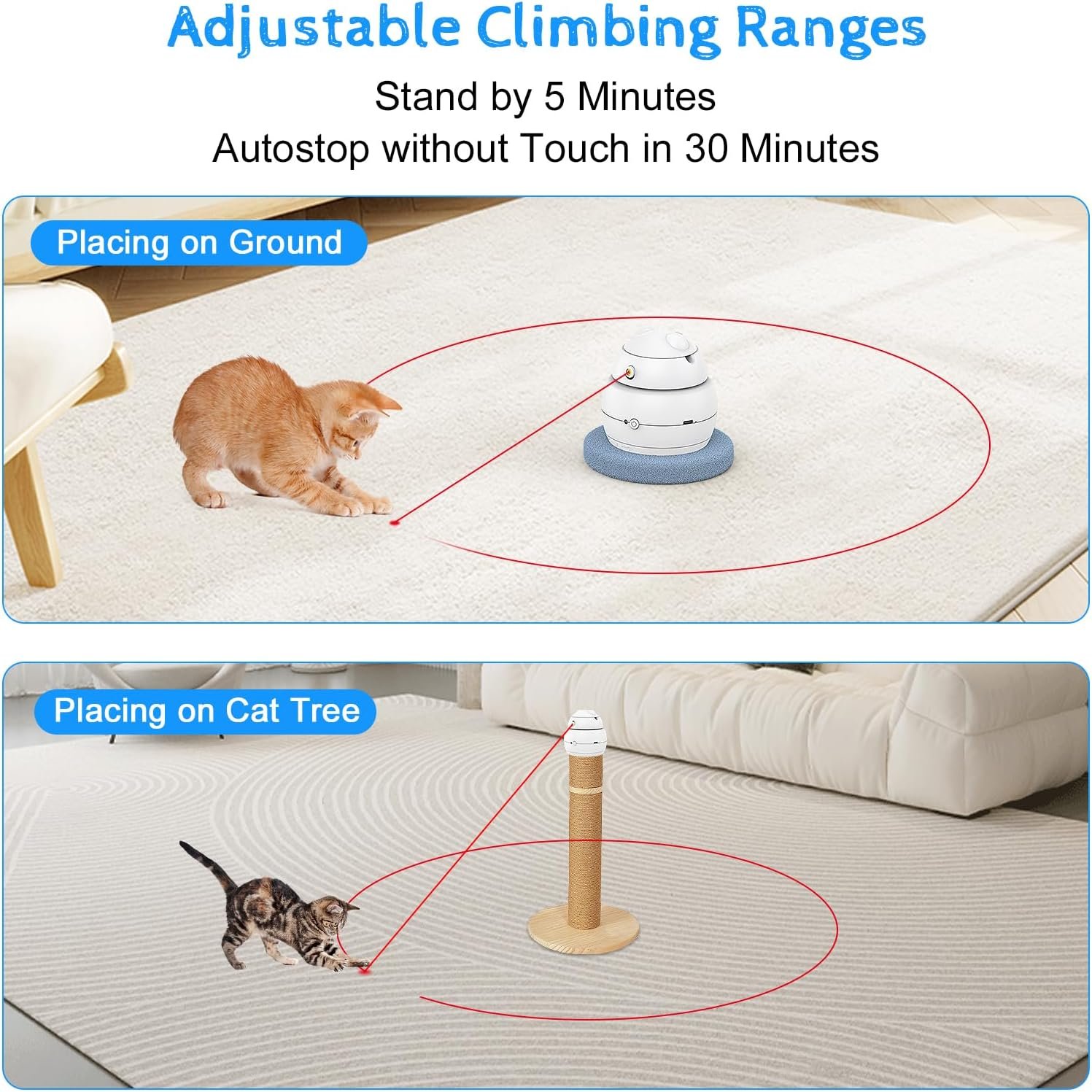 Laser Range Mode: Flexibly adjust the cat laser toy in two angles or place it on various surfaces like the ground, tables, bookshelves, and cat climbing racks. It stimulates your cat’s natural instincts to chase, pounce, and play. You can also pick up the cat toy to interact with your cat and eliminate boredom. These exciting games ensure your cat experiences both physical and psychological pleasure!