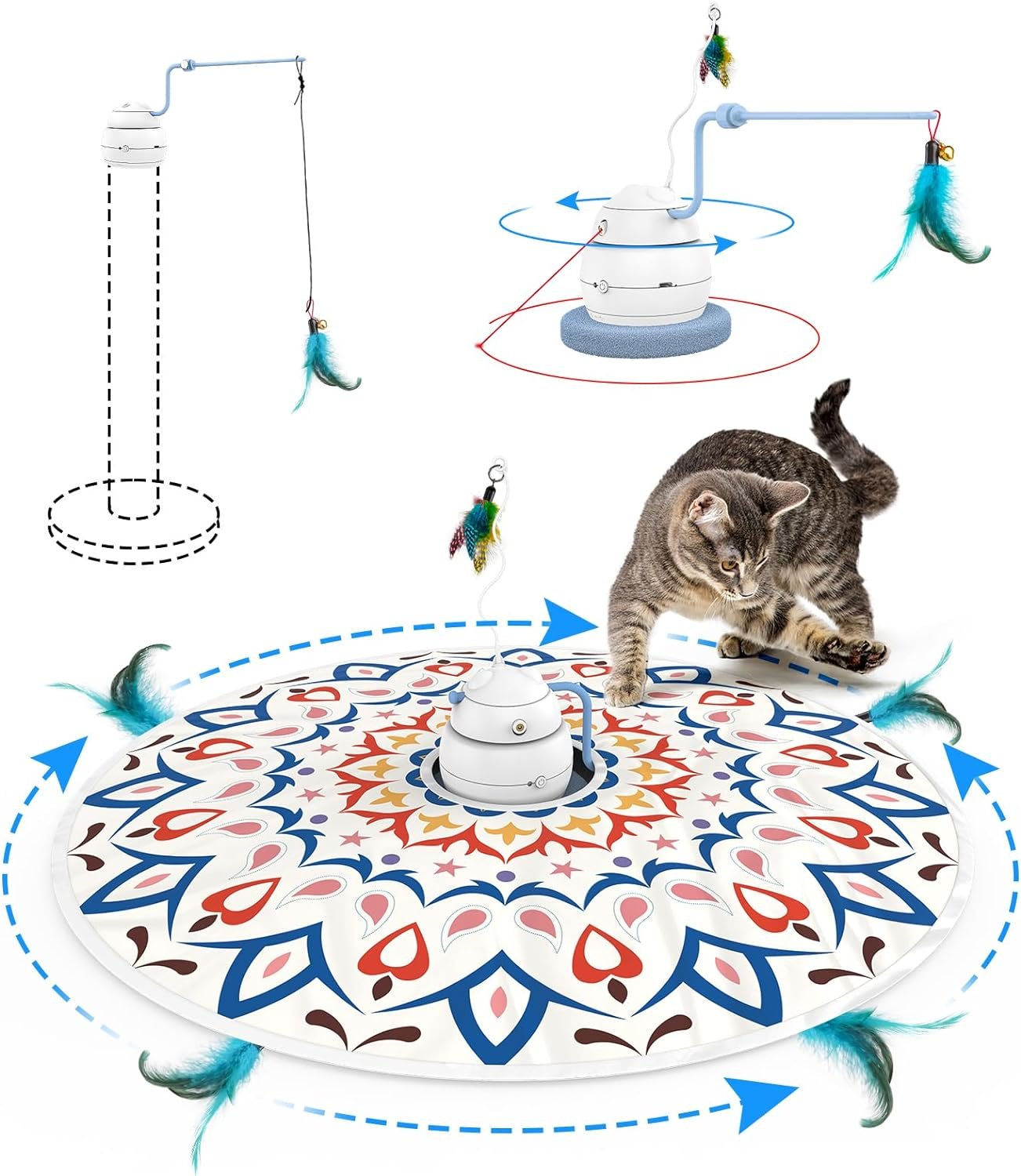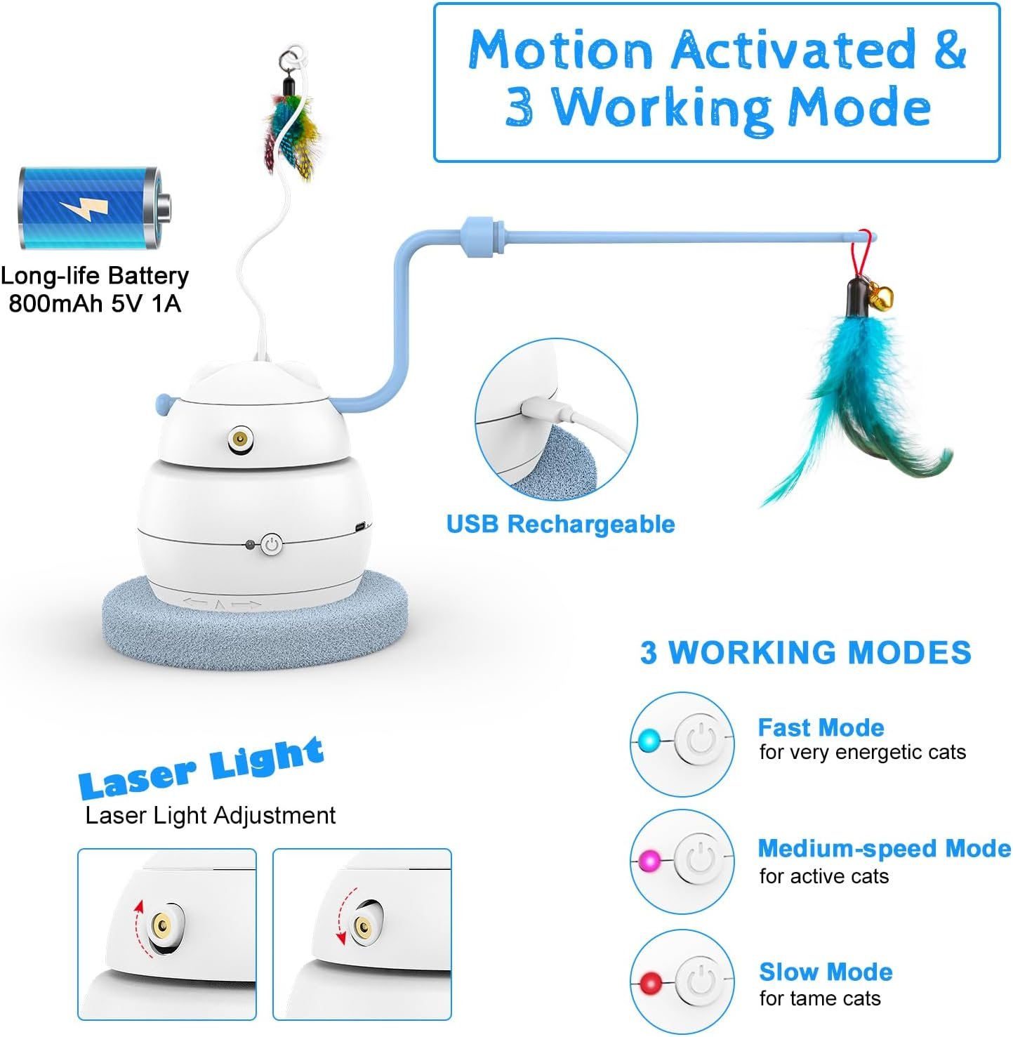 Motion Activated & Keep Your Cats Busy: Our interactive cat toy automatically stops working after 5 minutes of inactivity. It has a built-in 800mAh rechargeable battery that can be fully charged in just 2 hours. With low-consumption technology, it continues to eliminate anxiety and boredom, keeping your cats entertained and active.