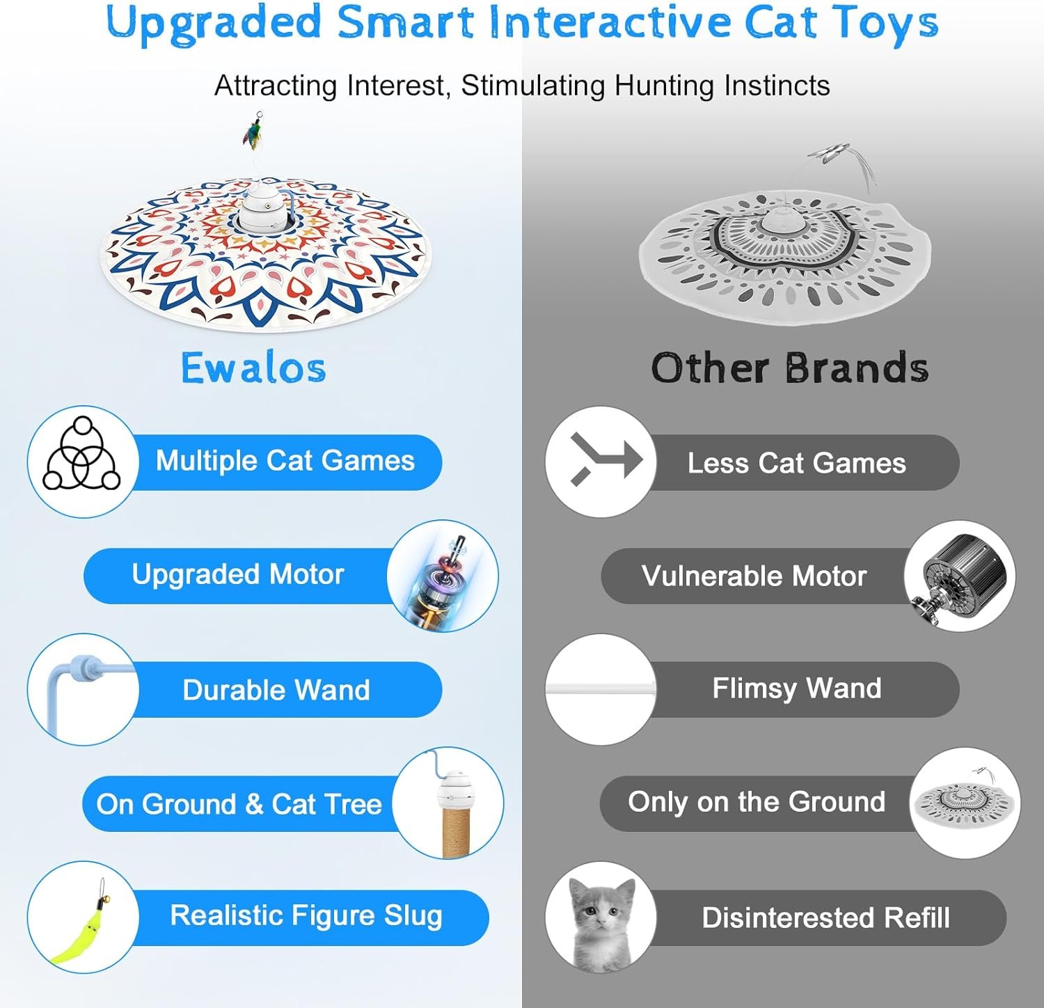 Multi-Games Add More Fun in Cat’s Life: Our Upgraded interactive cat toy combines an amazing laser, adjustable wand, and realistic slug. The attractive feather on top adds extra excitement. With an upgraded motor for a long life, it improves the interaction of hide and seek games. Install it on a cat tree to effectively enhance hunting and jumping skills.