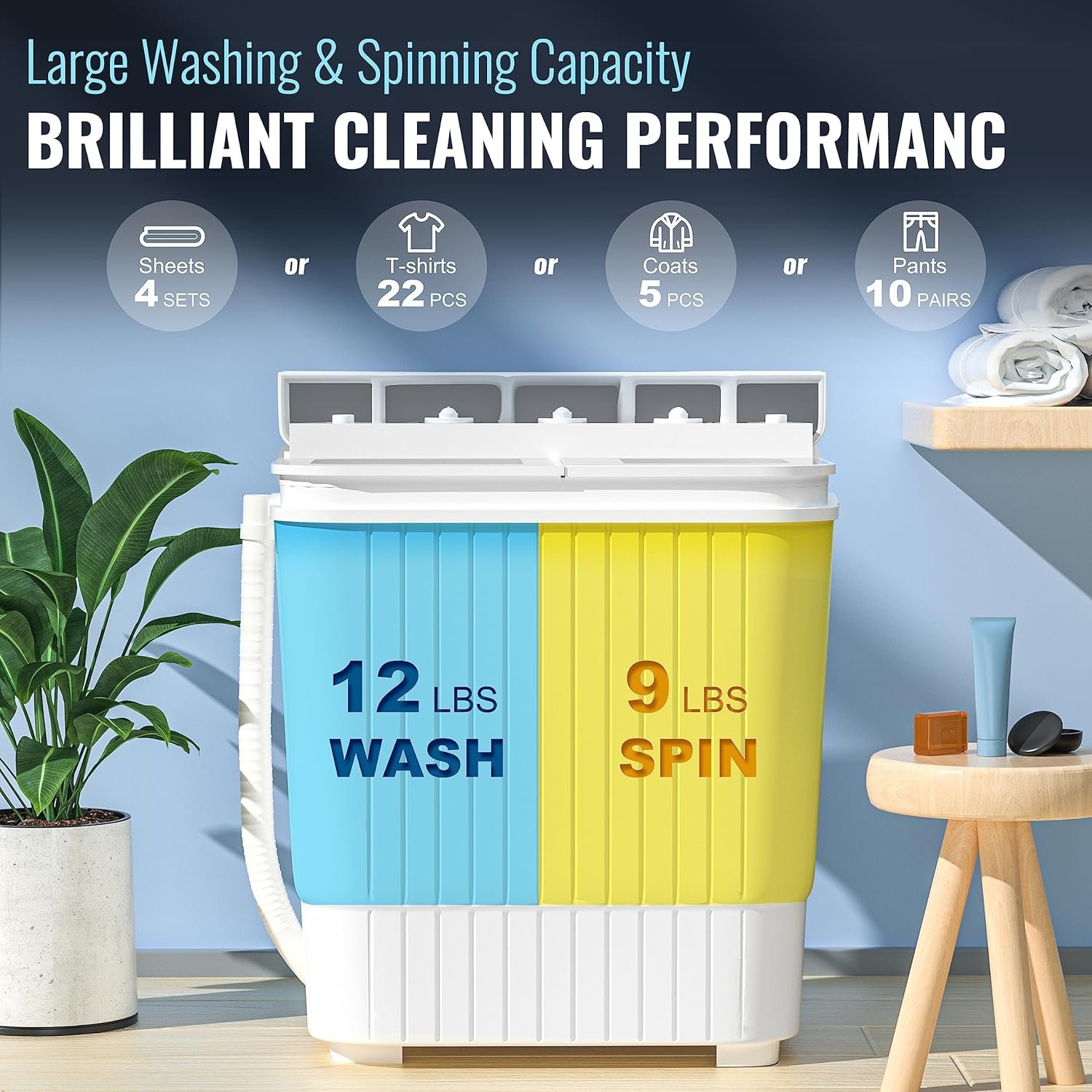 【Considerable Capacity】: Portable washer with enough capacity for you ( 12.6 lbs for washing, 9 lbs for Spin dry), perfect for washing various clothes, like shirt, socks and trousers. Note: The spin dry can not completely dry the clothes, still need to dry in the sun