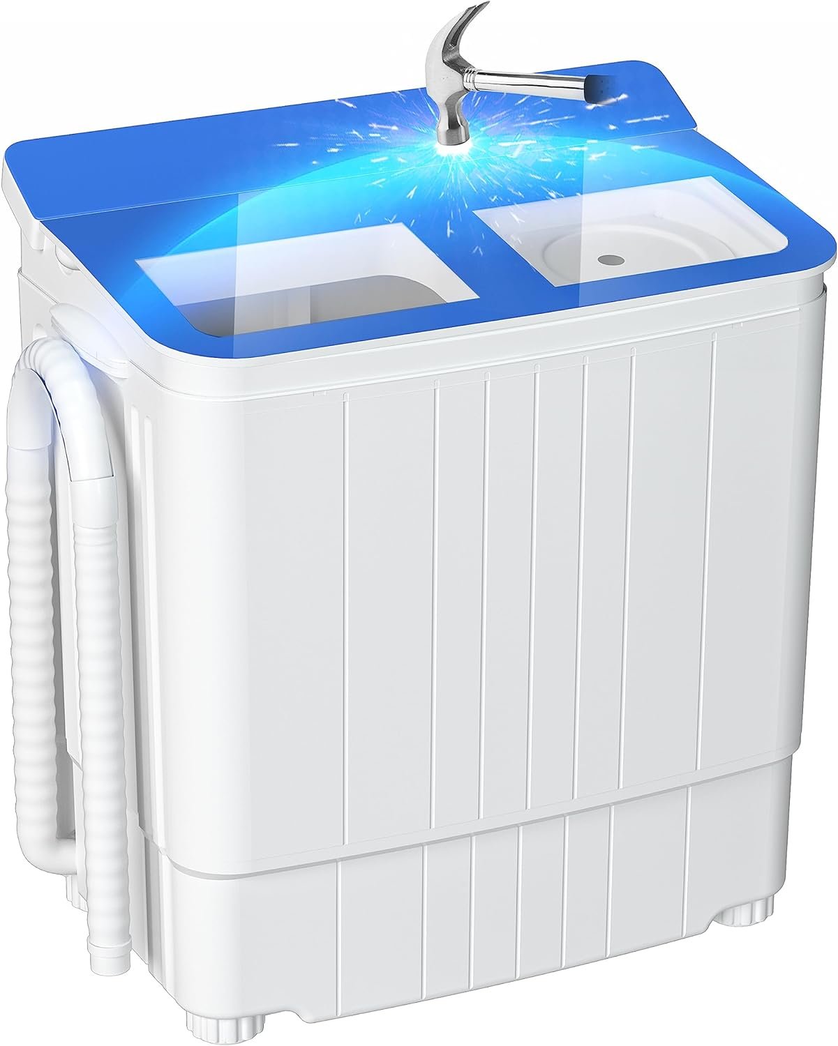 【Easy Operation&Glass Cover】: Adopt simplest operation panel–Separate washer and spin time control and 2 washing selection( Gentle, Normal according to your quantity of clothes). Compared to plastic cover, the glass cover of small washer make it more study, delicate, more clear to check working process