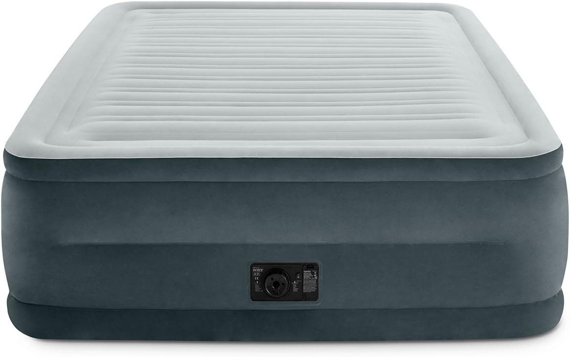 The Comfort Plush Elevated Airbed is a part of the Dura-Beam series of airbeds that are providing amazing durability for years of lasting comfort. The secret is in the Fiber-Tech beam construction, which is comprised of thousands of high-strength polyester fibers that provide enhanced comfort, stability and support. Each bed is covered in plush flocking that is soft to the touch, and the horizontal air chambers provide added stability and support around the entire bed. The mattress is also equipped with a quality-tested, 20.8-gauge waterproof flocked top with 15-gauge vinyl beams and 16-gauge sides and bottom for durability. And best of all, the Comfort Plush mattress is remarkably easy to inflate thanks to the built-in, high-powered electric pump, which does its job in a mere 3-1/2 minutes. No more fussing with tiring hand or foot pumps or rummaging through the garage for your detached electric pump. And should the mattress feel a little too soft or firm, you can customize the comfort level with the touch of a button. The Comfort Plush is raised 22 inches from the floor, making it far taller than most inflatable mattresses. And at 60 by 22 by 80 inches (W x H x L), the mattress is an official queen size, making it a good fit for fitted sheets. The Comfort Plush Queen bed–which offers a capacity of 600 pounds–is a terrific choice whether you’re sleeping at the in-law’s overcrowded house or setting up a guest bed in the basement. The mattress comes with an AC power cord and a duffel bag (for storage). Regarding Inflation: Measurements will vary based on the manner in which it is inflated and packaging disclaims “approximate size”. Airbeds are measured from the widest point including the beams (bulges) on the side and off the tallest point from the floor including built-in pillows if applicable. Location, temperature, and humidity will affect the airbed’s firmness. Airbeds will need to be occasionally re-inflated (topped off) to maintain desired firmness when used for more than a few days as vinyl tends to relax over time.