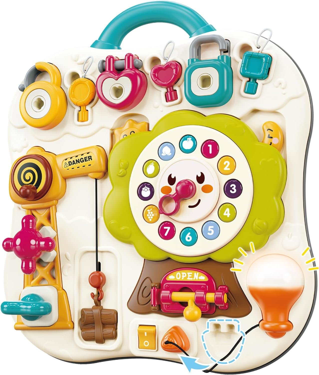 【Safe】A safe & reliable toys for toddlers 1-3. Our busy board for toddlers is made from safety ABS material with no sharp edges. All parts are securely fixed and not easy to fall off. Keep your kids busy and safe!