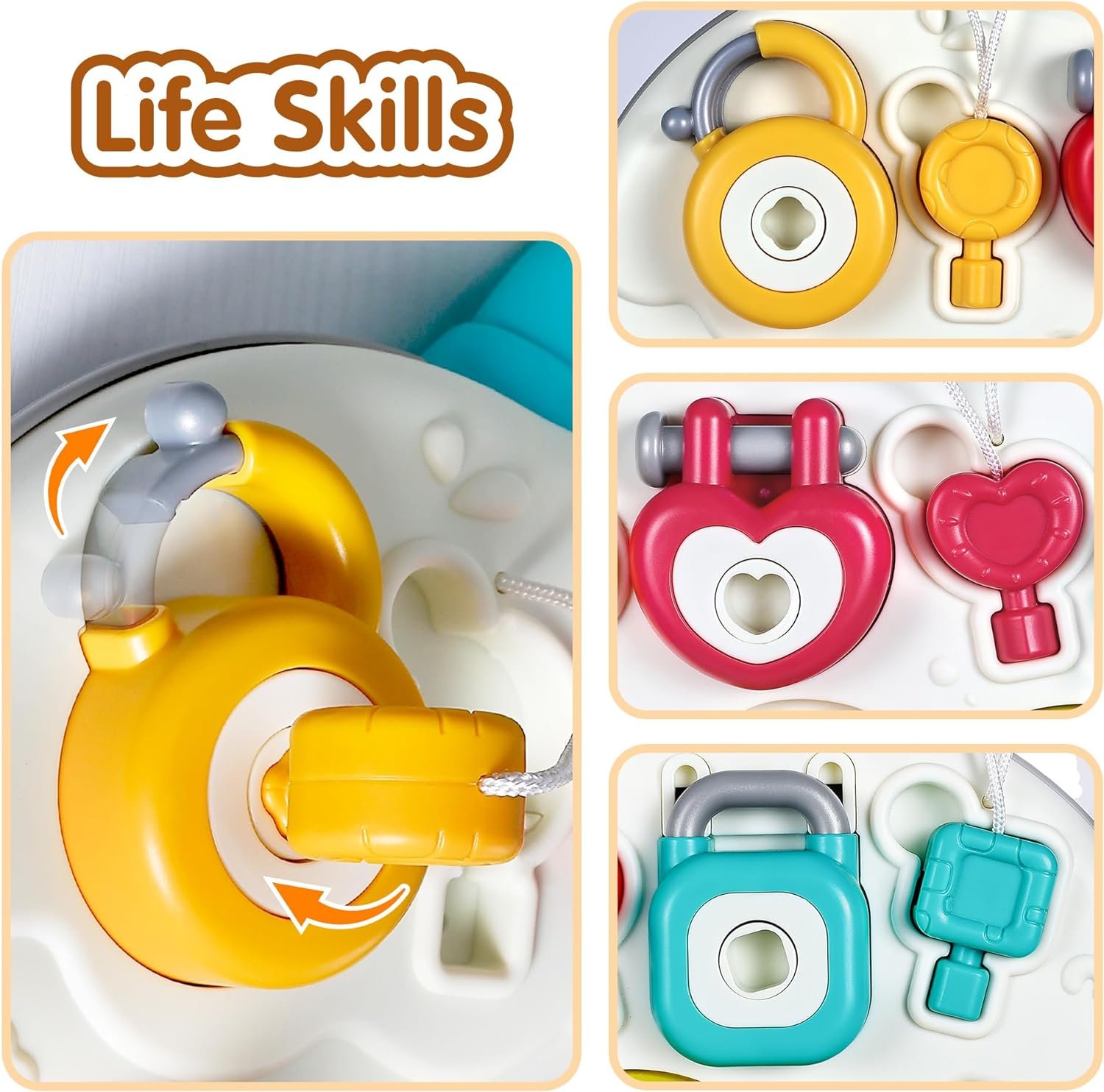 【Life Skills Enhancement】With color and shape matching locks, our Busy Board promotes the development of essential survival skills in children. They can learn how to unlock and open different compartments, fostering problem-solving abilities.