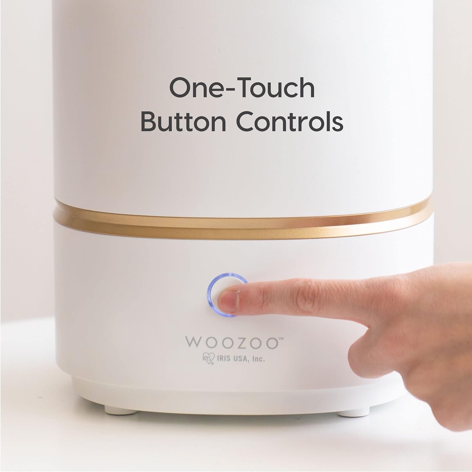 With three (3) levels of ultra-fine mist output and a maximum humidification rate of up to 230mL/h, the WOOZOO Ultrasonic Cool Mist Humidifier makes it easy to maintain humidity at an ideal 30% – 50% in your bedroom, living room, office, or any space. Low humidity can cause problems such as dry skin, sinus discomfort, and can increase static electricity build-up. Better air quality makes for better sleep, helps alleviate dry skin, and even helps to keep plants healthy. The large 3. 0-liter capacity tank enables continuous operation without the need to refill. On a full tank, the Ultrasonic Humidifier runs for up to 38 hours on Low, 23 hours on Medium, or 13 hours on High. The unit shuts off automatically when water runs out. Refill and cleanup are a breeze with the top-fill tank design; simply remove the lid on top to directly access the water reservoir. On the Low setting, the Cool Mist Humidifier’s noise output is less than 37db, even quieter than a library! The nonintrusive blue LED ring creates a relaxing atmosphere perfect for sleep, studying, or even working at home or in the office without disturbance. This is the perfect humidifier for babies’ nurseries, children’s rooms, family rooms, living rooms, offices, studies, bedrooms, and anywhere you can think of. Inspired by the Japanese word for vortex, “uzu”, the IRIS USA WOOZOO series focuses on adjusting and improving air quality with every device. The powerful and convenient WOOZOO Ultrasonic Humidifier offers all the comfort and ease-of-use you need with a straightforward single-button control system. Operation is quick and easy, just push the button and let it work for you.