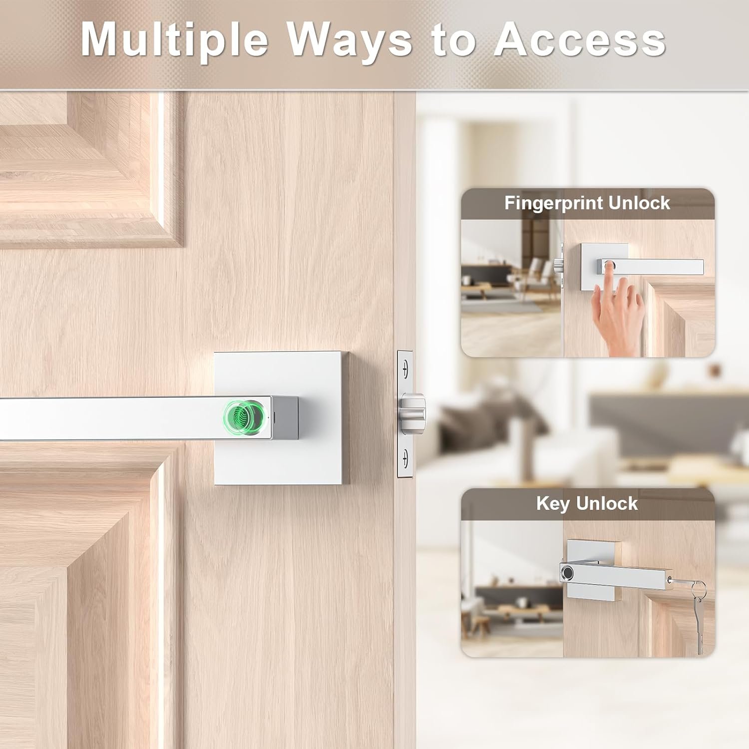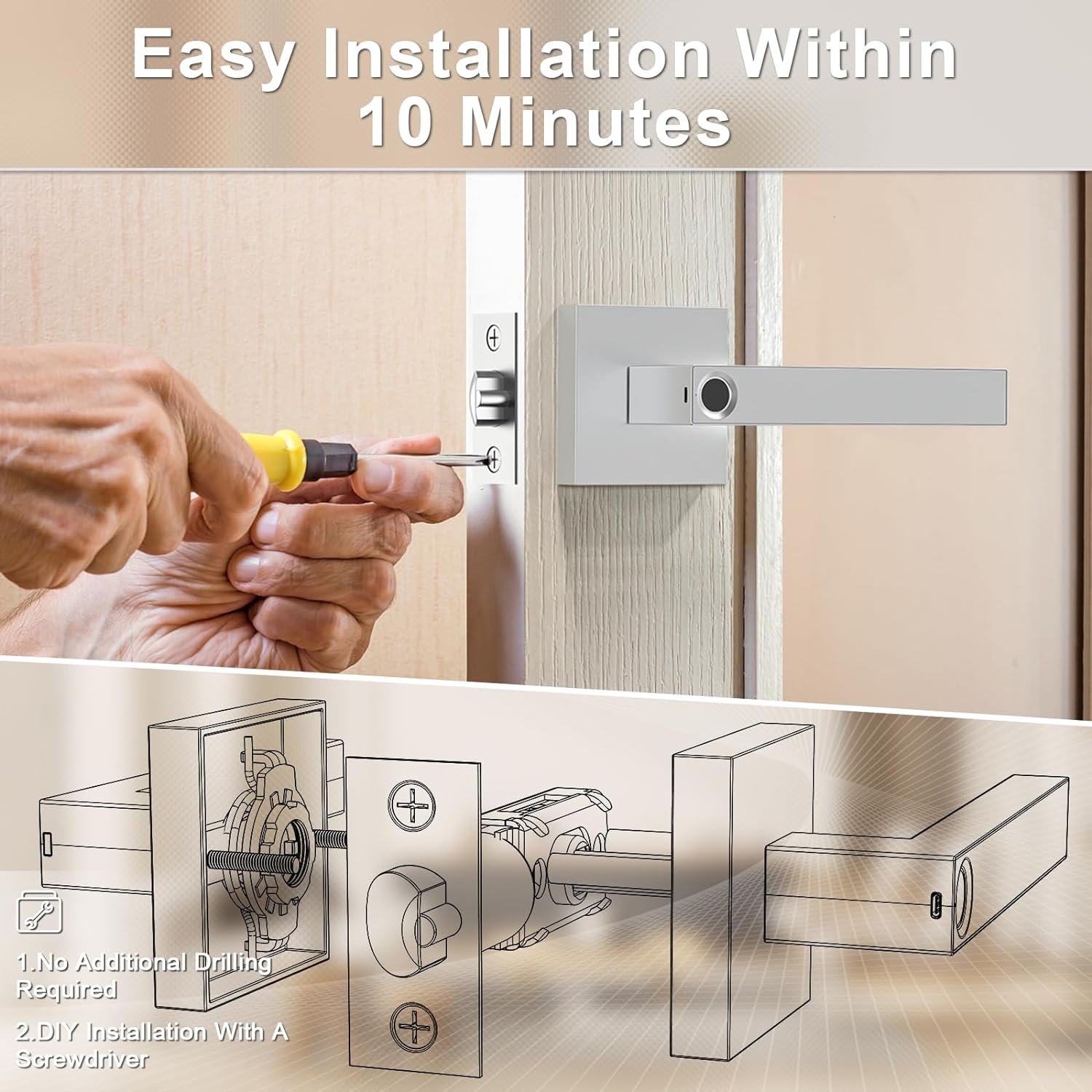šćFINGERPRINT MANAGEMENTćThe smart door knob can be adjusted and installed on the left and right doors. It can enter 20 fingerprints, and you can invite relatives, friends, tenants, etc. to enter fingerprints.