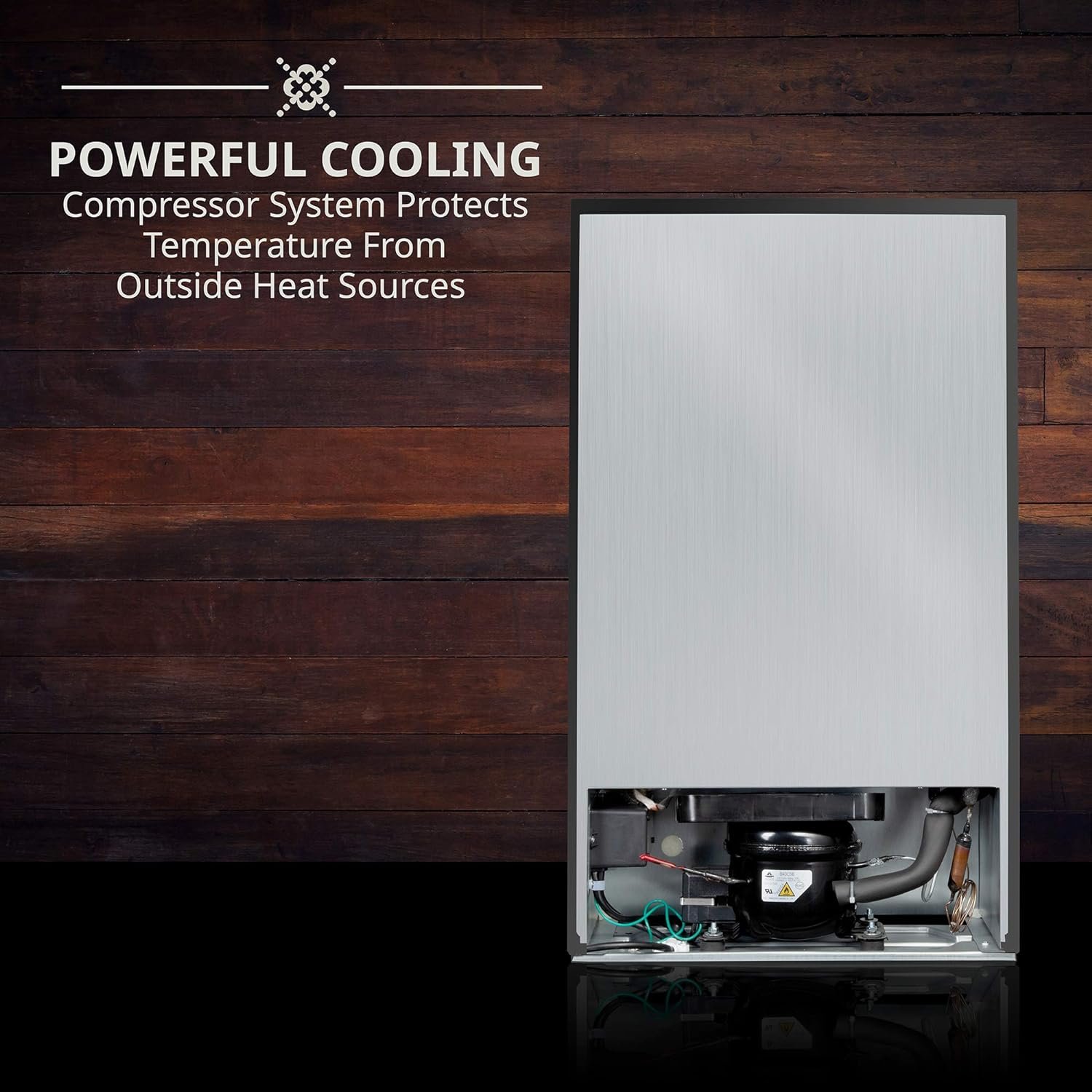 UV-RESISTANT DOUBLE-PANED THERMOPANE GLASS – A double-paned glass door not only keeps the interior insulated, but also protects your collection from harmful UV light that can damage the tannins and overall flavor of your wine.