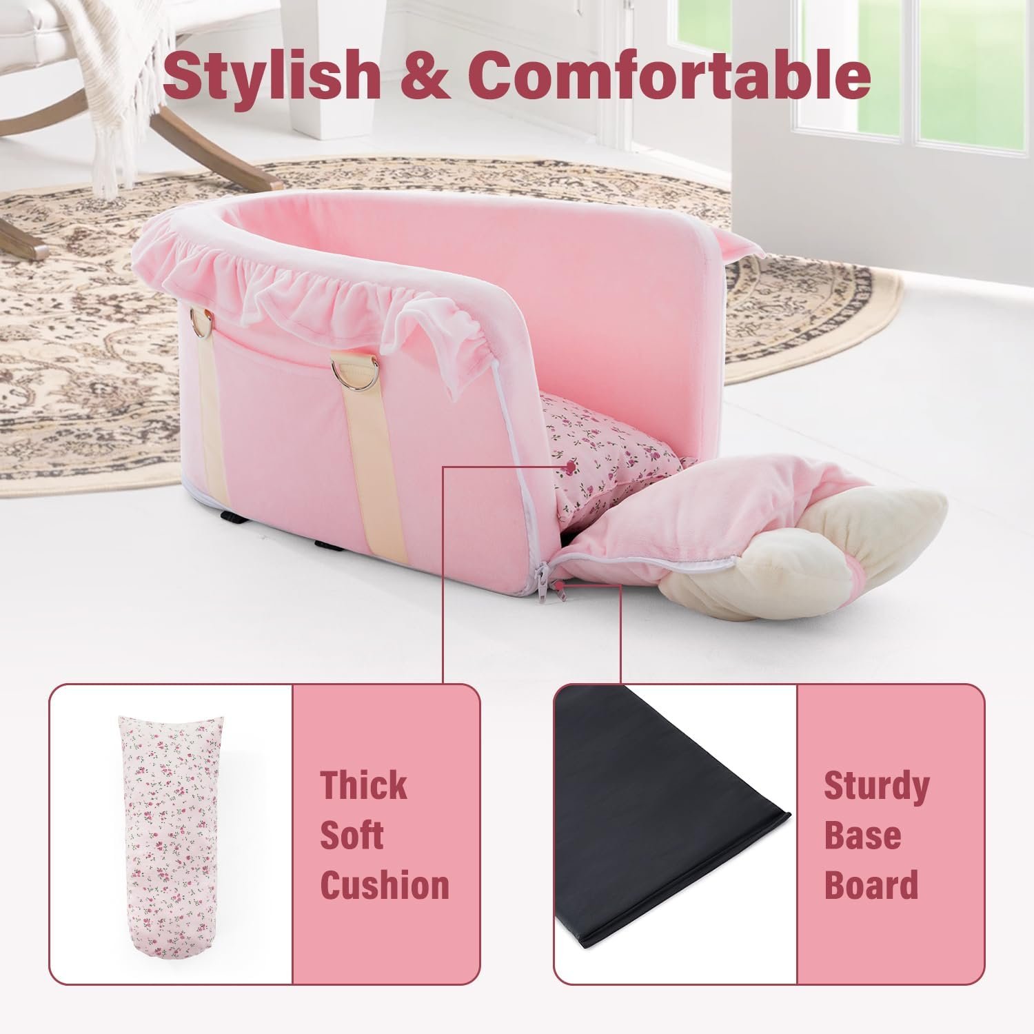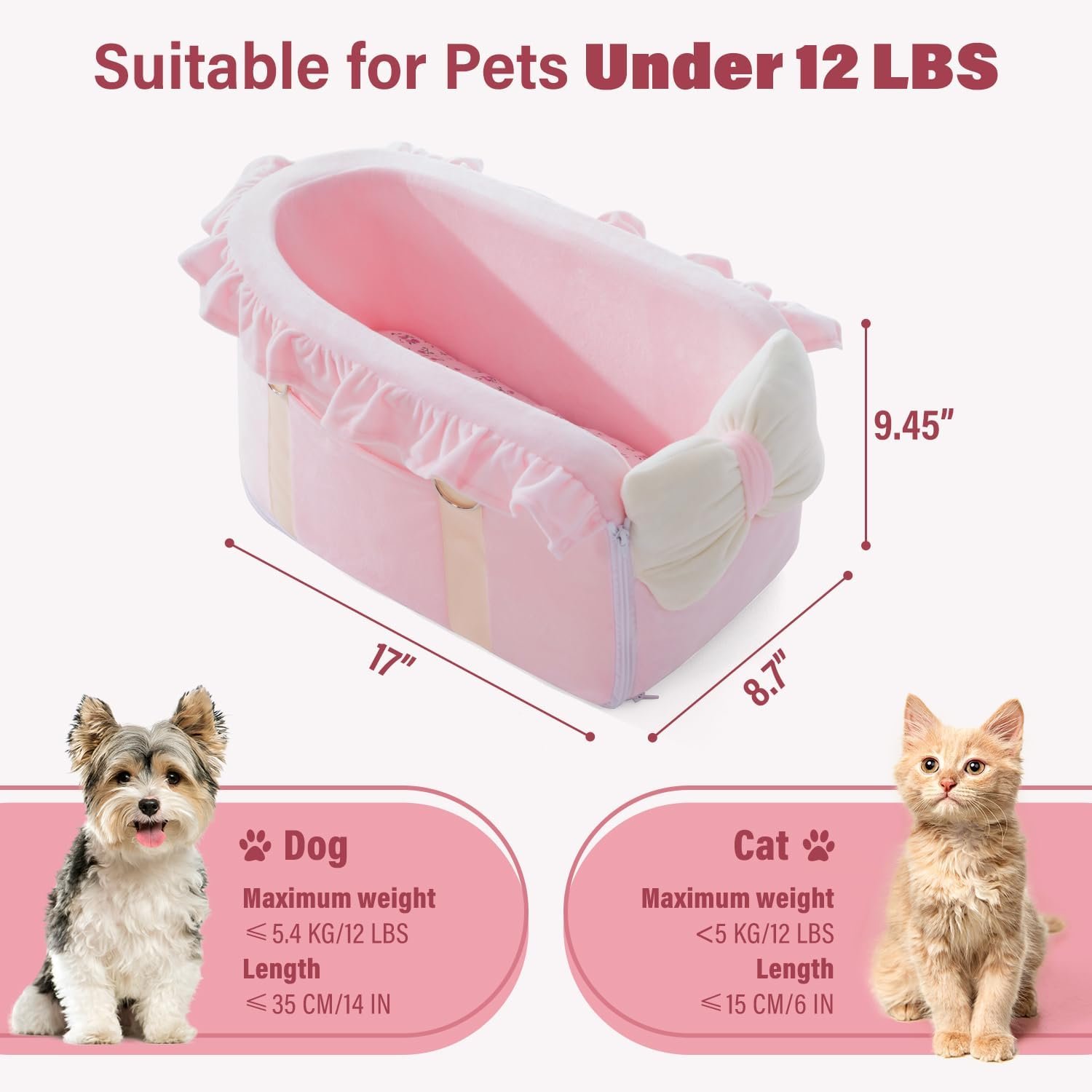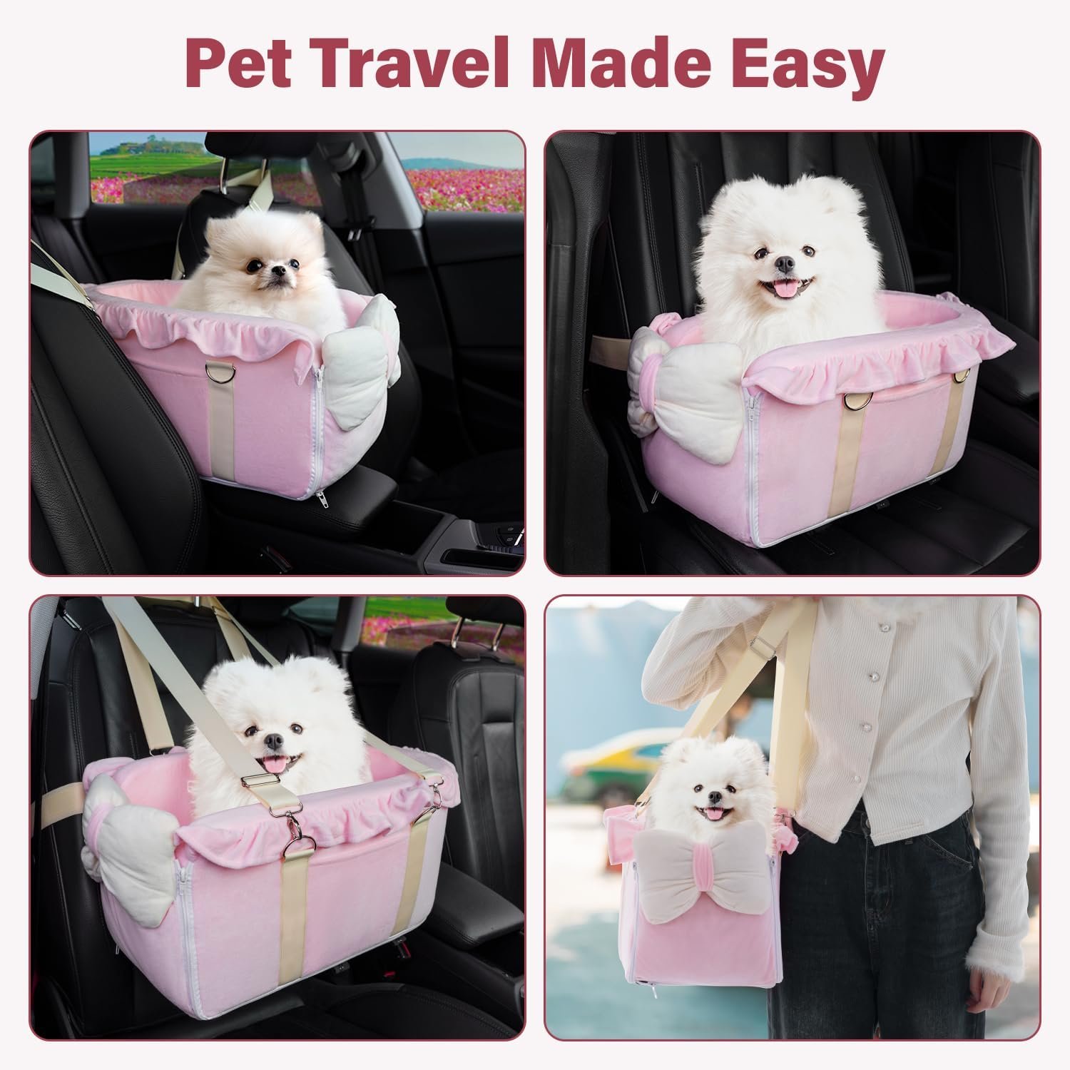 【Pet Car Seat for Small Dogs and Cats】This well-crafted bow design dog car seat is perfect for small dogs under 12 lbs and cats. Easy to install and remove, ideal for long trips with your furry companions.