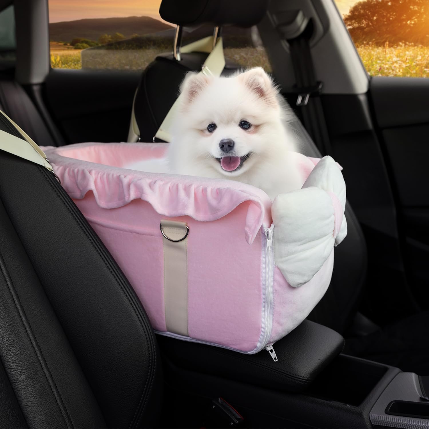 【Notes】Please allow for slight deformation of the vacuum-compressed small dog car seat upon opening, which will gradually regain its shape. Check product dimensions in product images and measure your pet(<12 lbs) and car central console distance (width >9″) before purchase. Prioritize pet safety and comfort during travel.