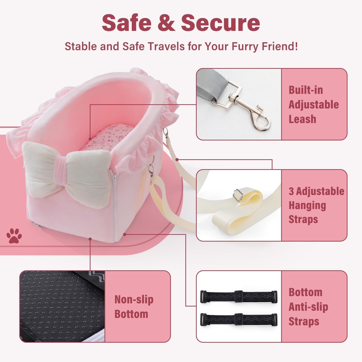 【4-in-1 Design】4-in-1 design with three detachable shoulder straps for versatile mounting options in vehicles and as a pet bag, meeting your travel needs.